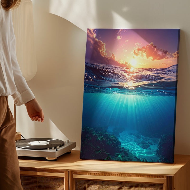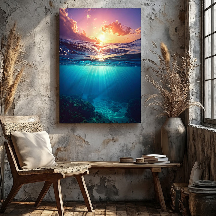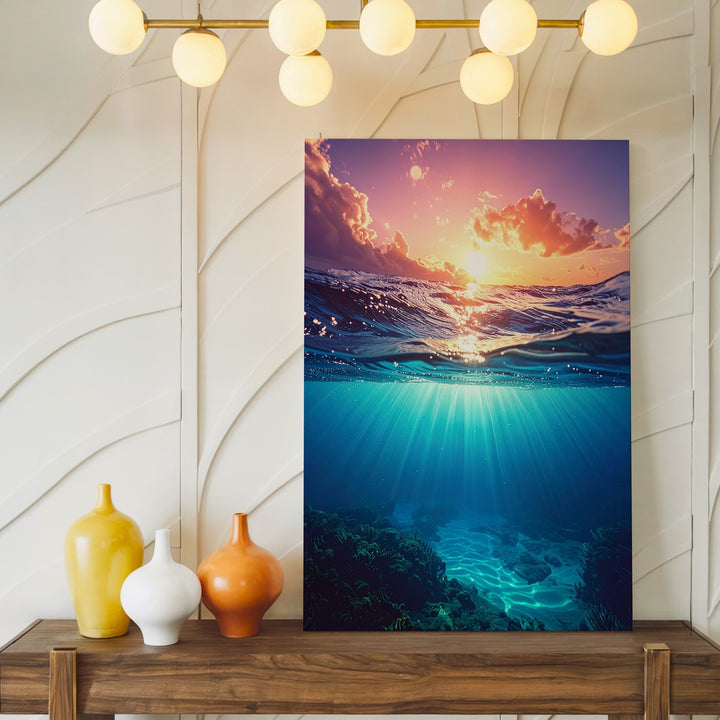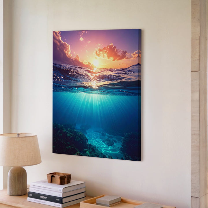 Above & Below Ocean Canvas – Split-Perspective Sunset & Underwater Art