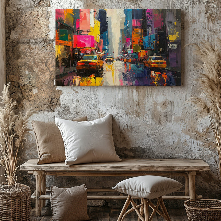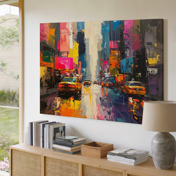 Neon Rush Canvas – Abstract City Street Scene with Expressive Color