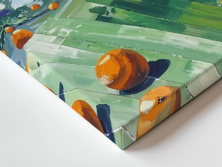 Vibrant Tangerine Dance Canvas – Abstract Fruit & Stripe Pattern Wall Art