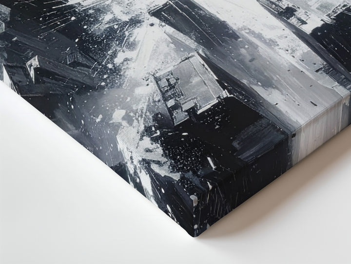 Monochrome City Burst Canvas – Abstract Aerial Urban Explosion Art