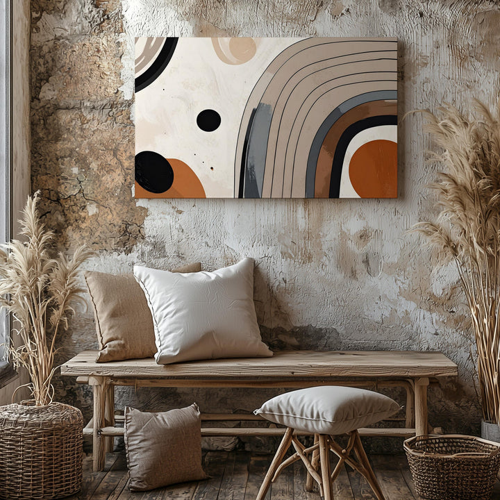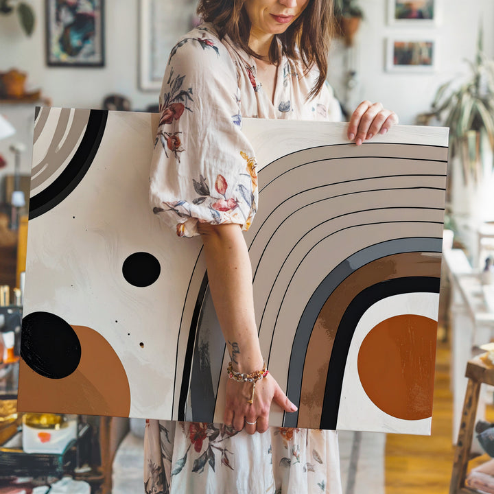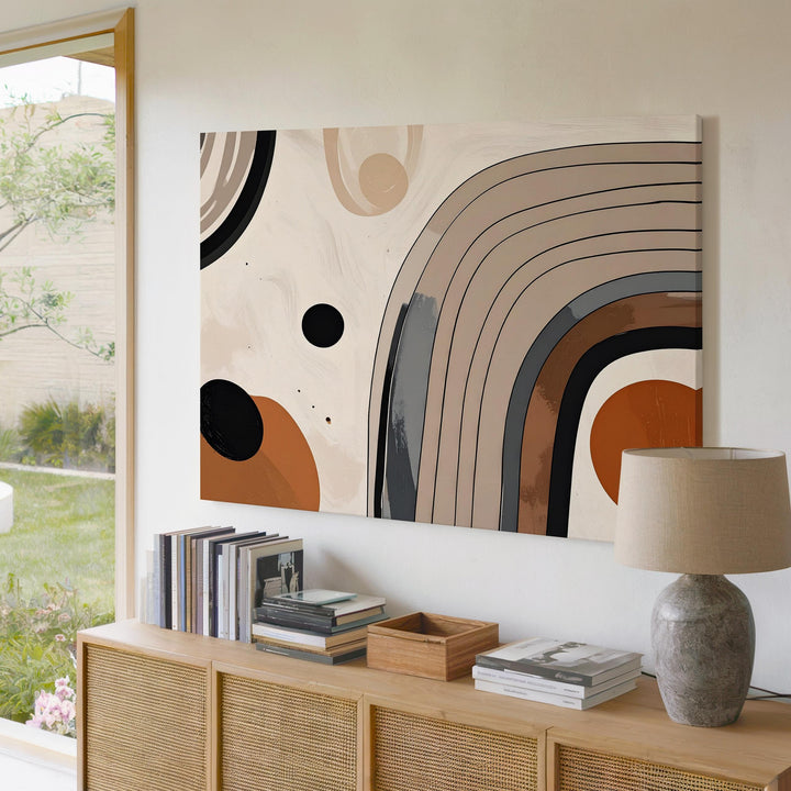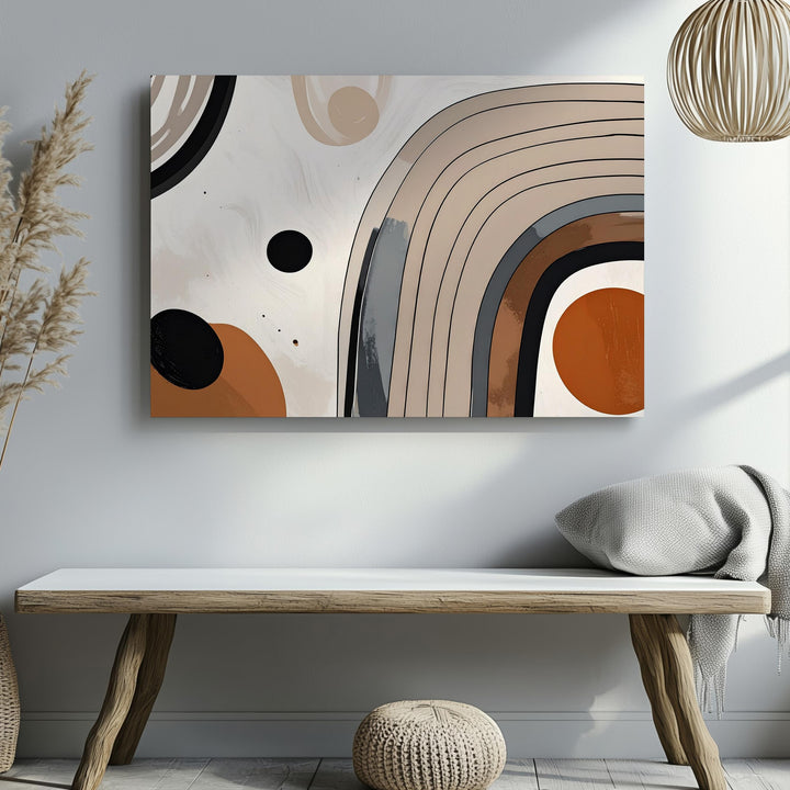 Boho Pathways Canvas – Terracotta Circles & Black Arches on Cream