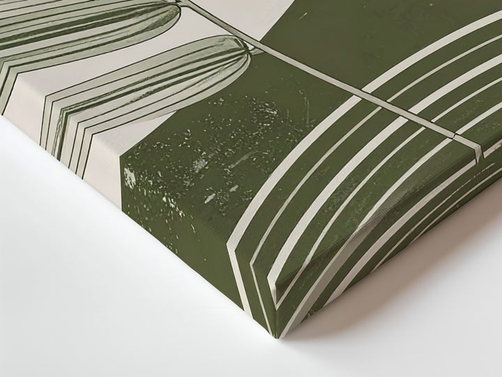 Moonrise Botanical Arch Canvas – Minimalist Green Nature & Crescent Design