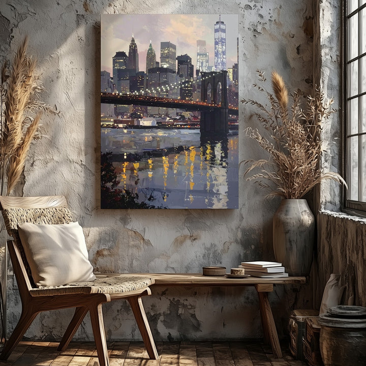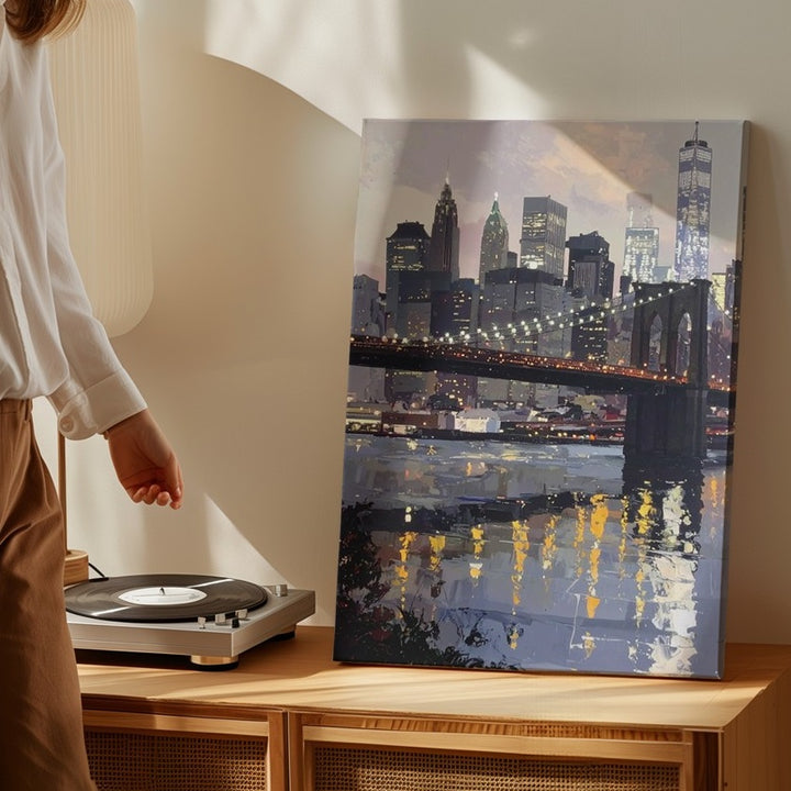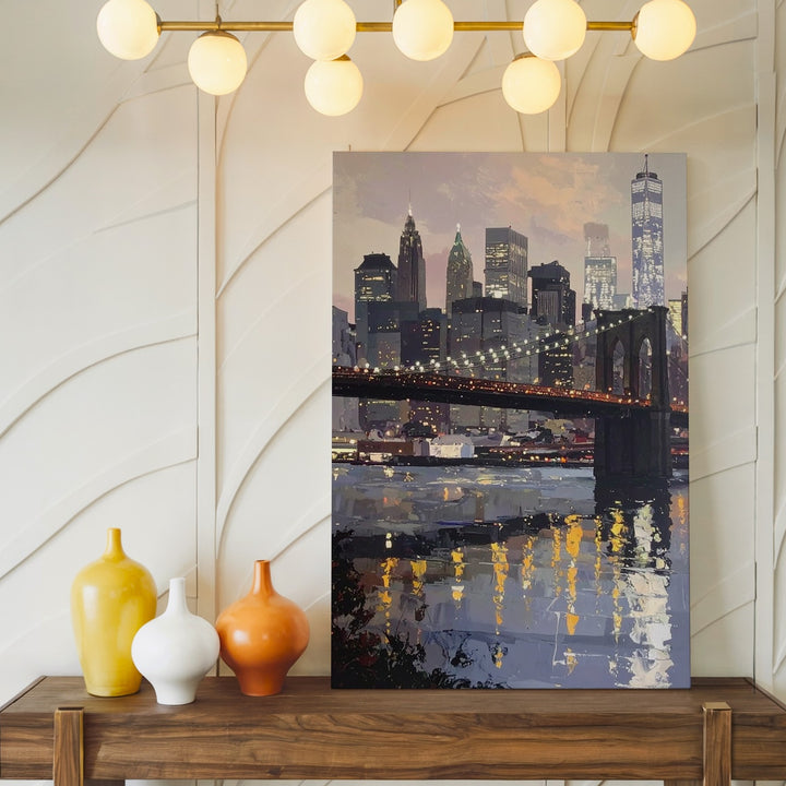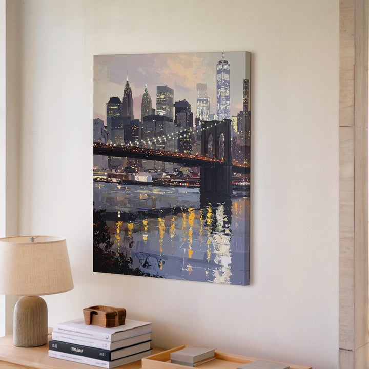 Brooklyn Bridge Canvas – Stylized New York City Skyline with River Reflection