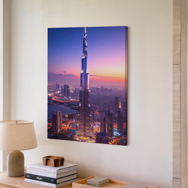 Burj Khalifa Twilight Canvas – Illuminated Dubai Cityscape at Dusk