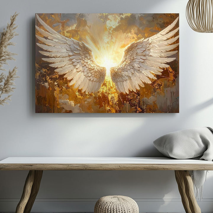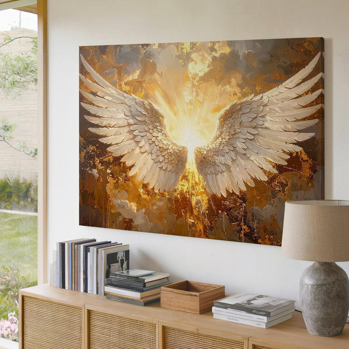 Celestial Angel Wings Canvas – Golden Divine Wall Art