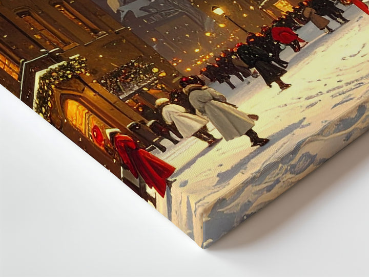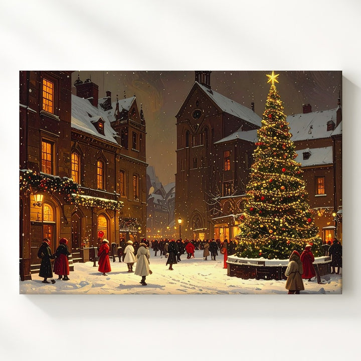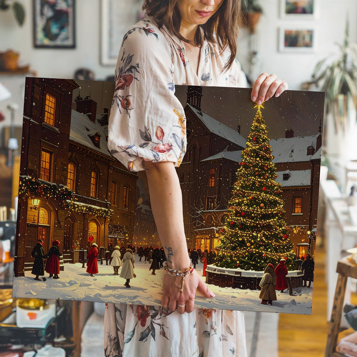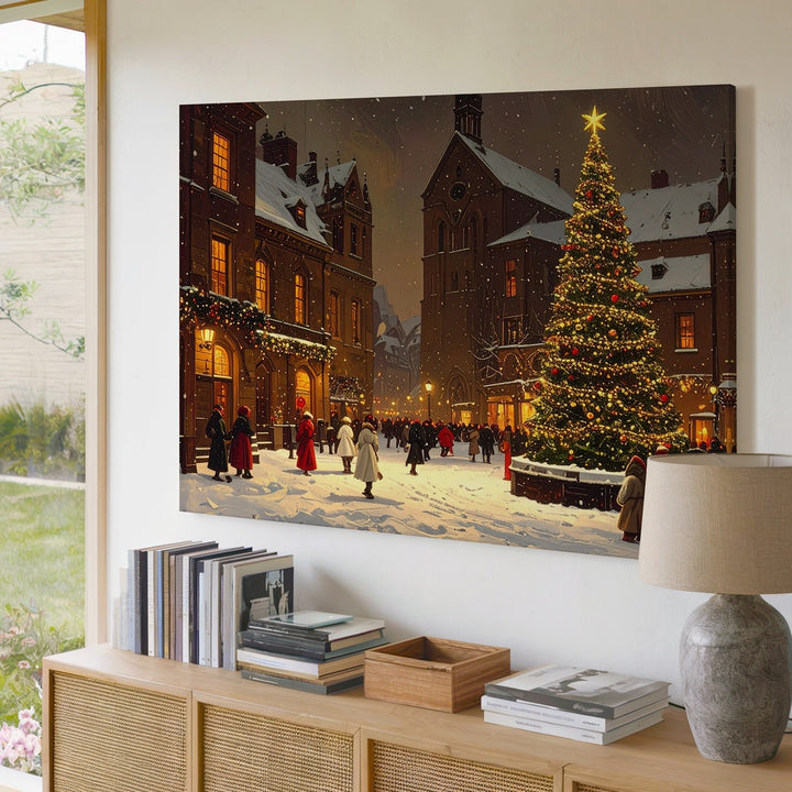 Christmas Market Square Canvas – Festive Snowy Town with Tree and Lights