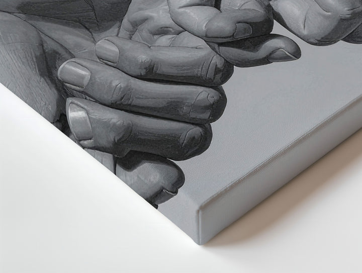 Clasped Hands Canvas – Grayscale Pencil Drawing of Unity and Trust