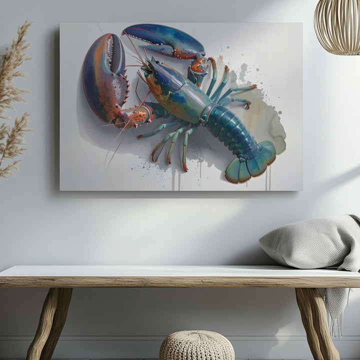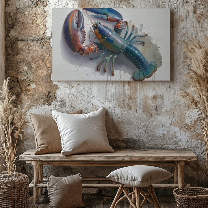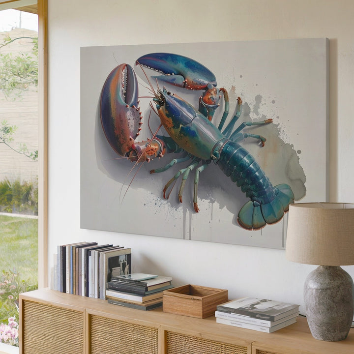 Vibrant Lobster Watercolor Canvas – Bold Marine Art in Iridescent Hues
