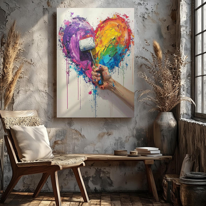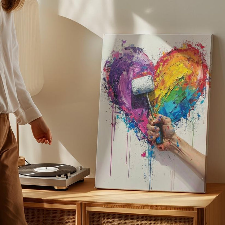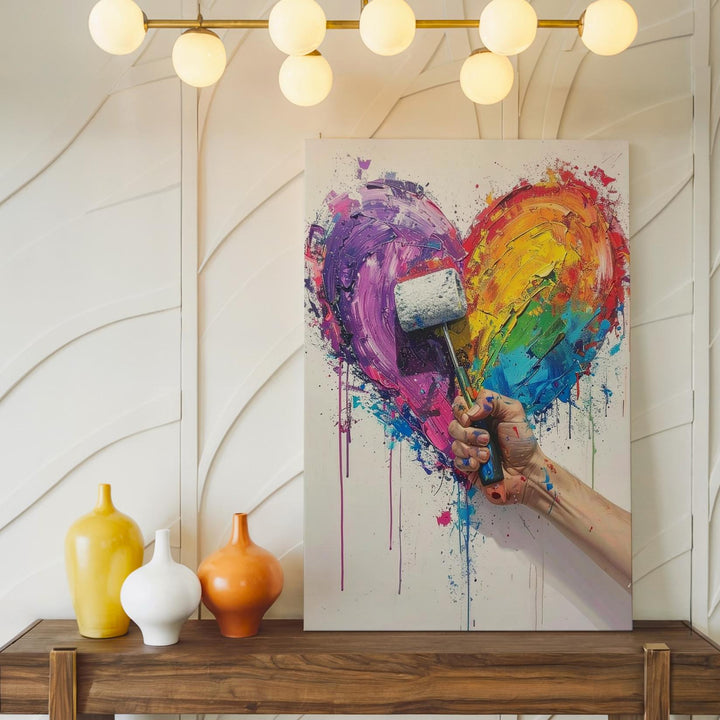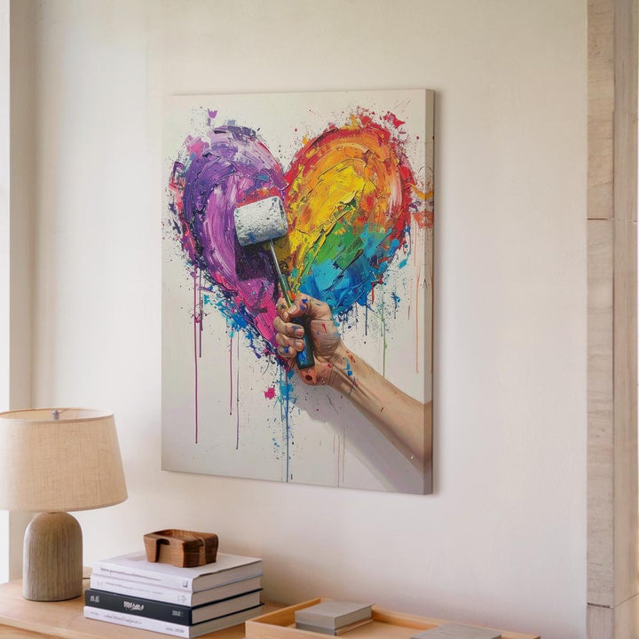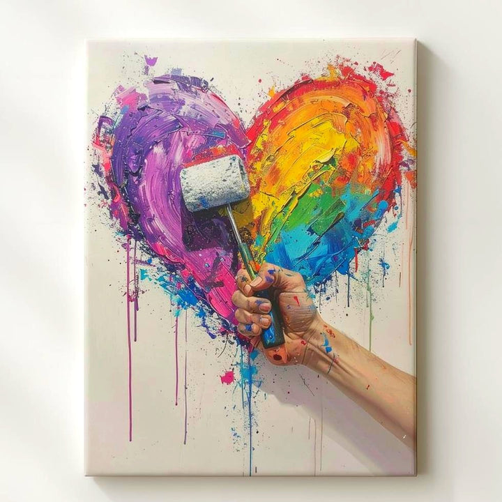 Creative Love Canvas – Abstract Multicolored Heart with Paint Roller