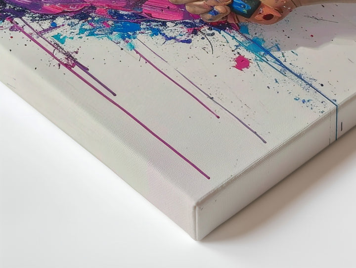 This dynamic canvas captures the moment of artistic creation, where a hand uses a paint roller to form a vibrant, multicolored heart. The heart, made of textured layers in purple, yellow, blue, red, and green, is brought to life through splatters and drips, creating a raw and expressive effect. The paint roller, still partially covered in color, and the realistic hand add a human touch, emphasizing the spontaneous and creative nature of love. The white background allows the heart’s vivid colors to stand out, making this piece a powerful expression of emotion and creativity.