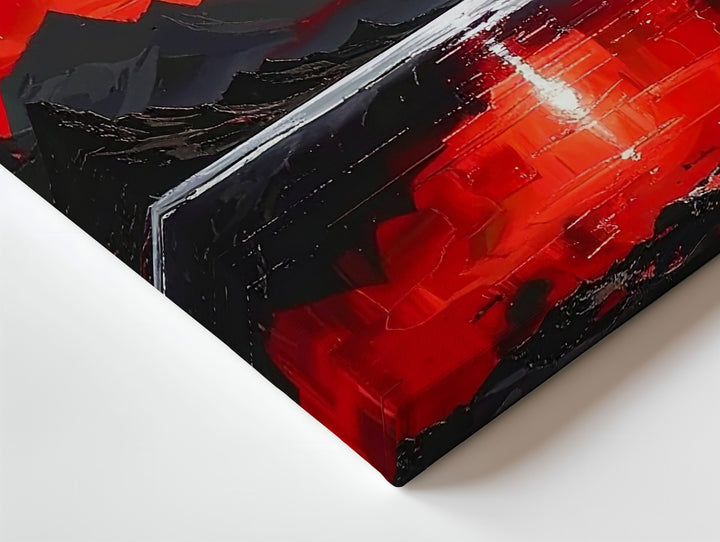 Crimson Dusk Mountain Canvas – Dramatic Red & Black Sunset Landscape Art