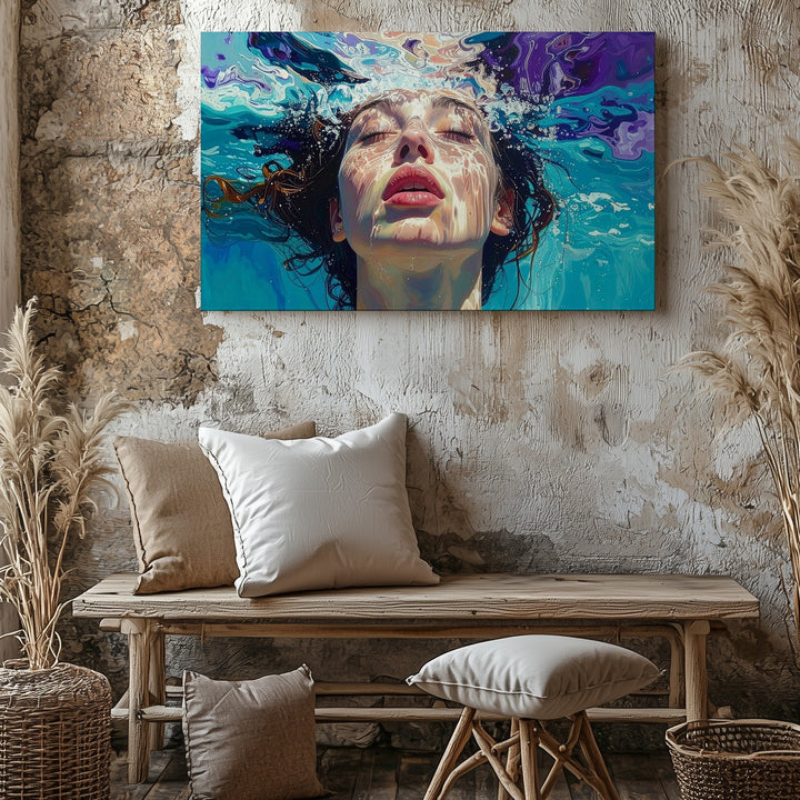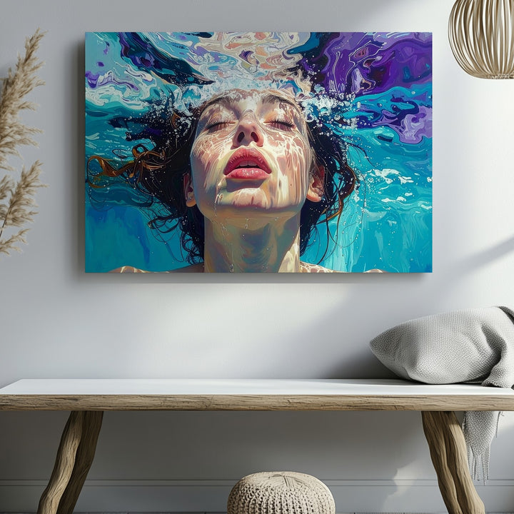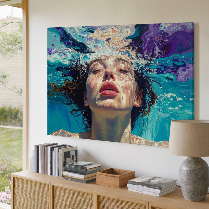 Dreamy Submerged Woman Canvas – Surreal Expressive Underwater Art