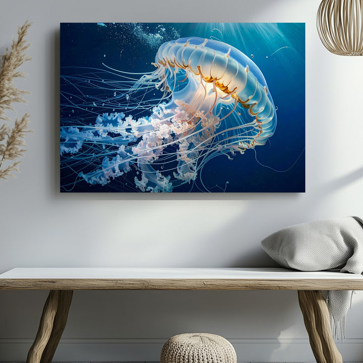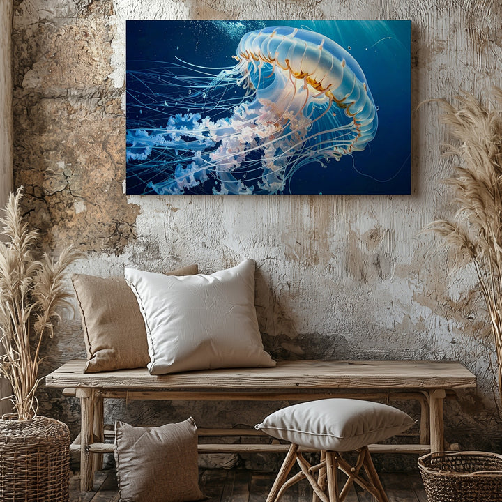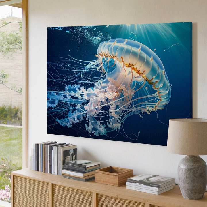 Elegant Jellyfish Canvas – Deep Blue Underwater Photography Wall Art