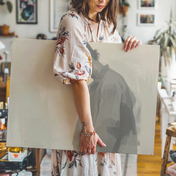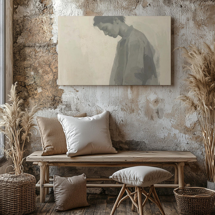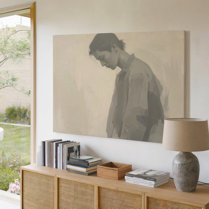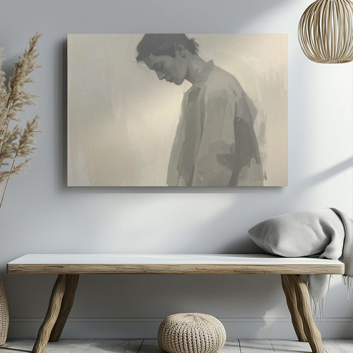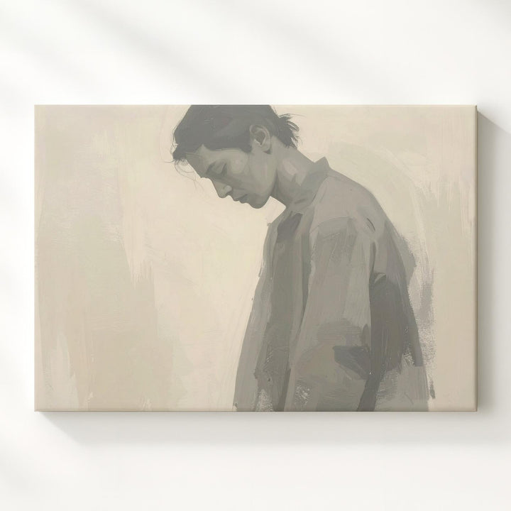Ethereal Grayscale Figure Canvas – Minimalist Emotional Portrait Art