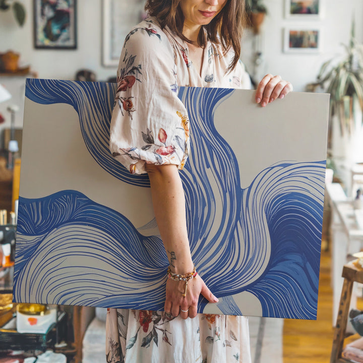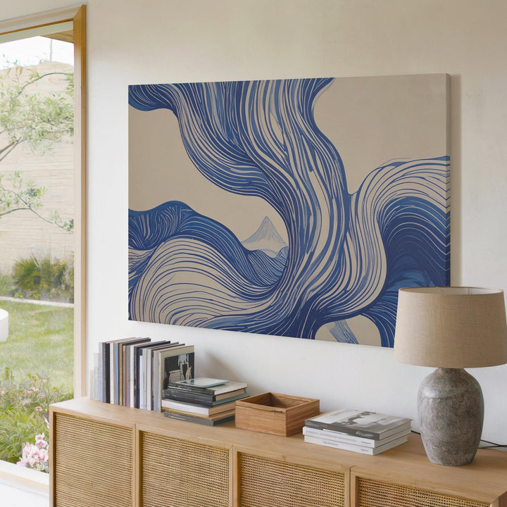 Fluid Blue Lines Canvas – Abstract Art of Water-Inspired Movement