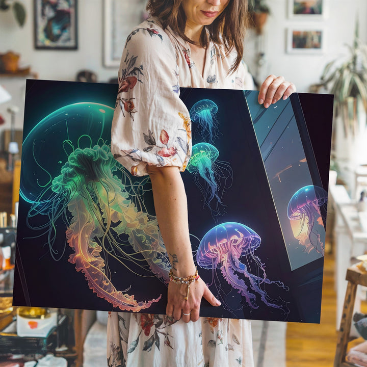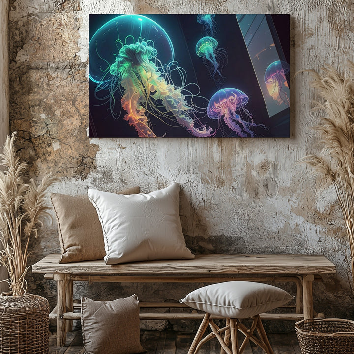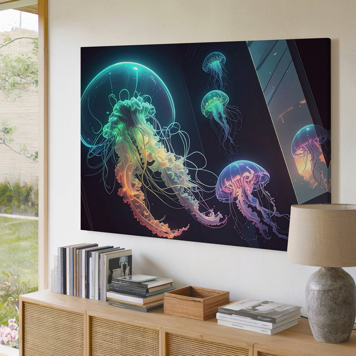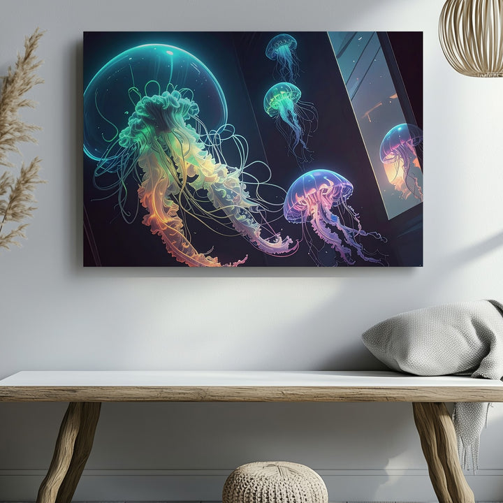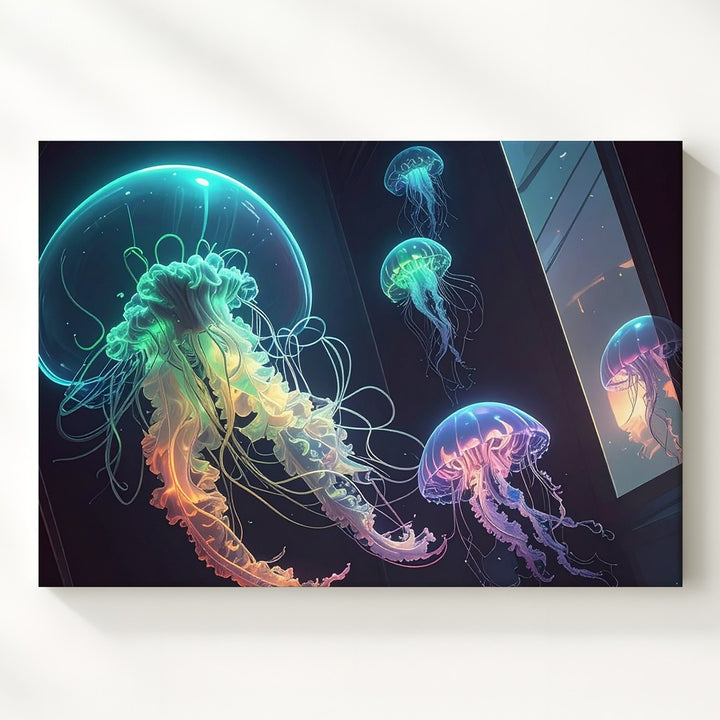Neon Jellyfish Dreamscape Canvas – Futuristic Sci-Fi Ocean Art