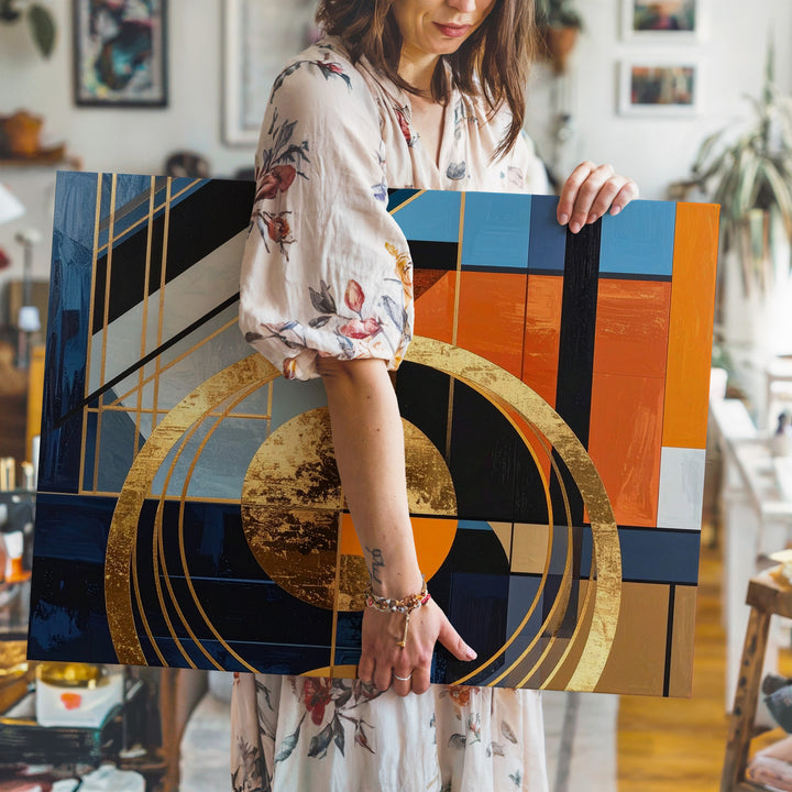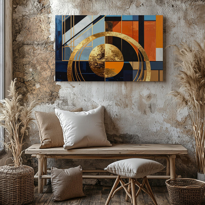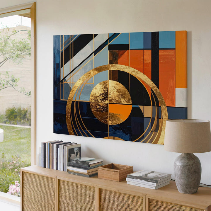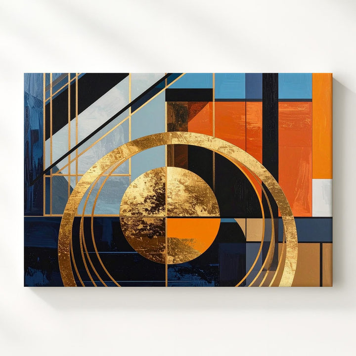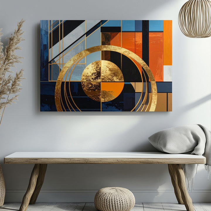 Golden Orbit Geometry Canvas – Bold Abstract Modern Wall Art