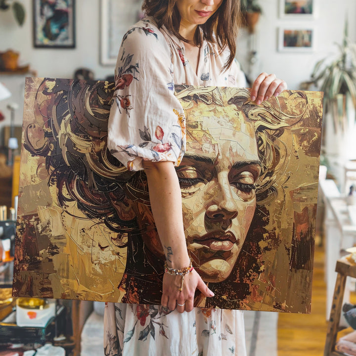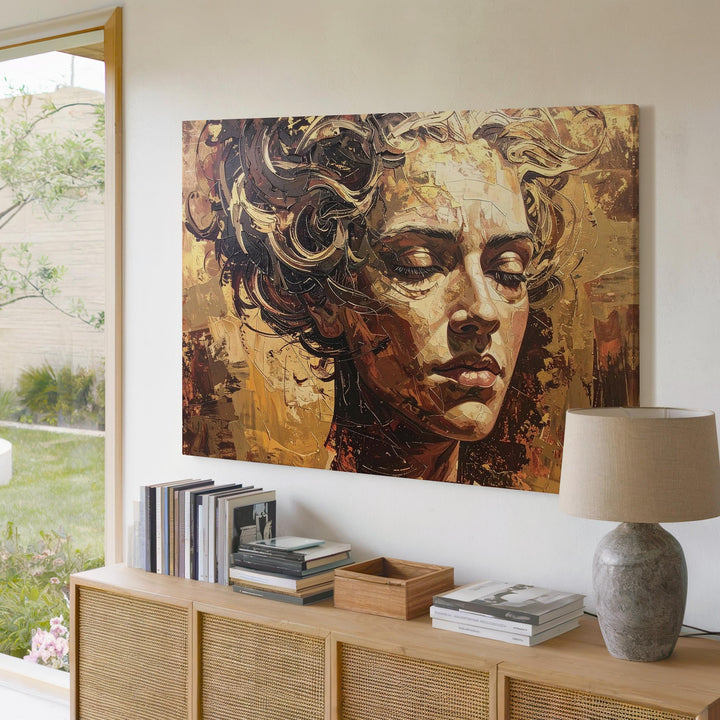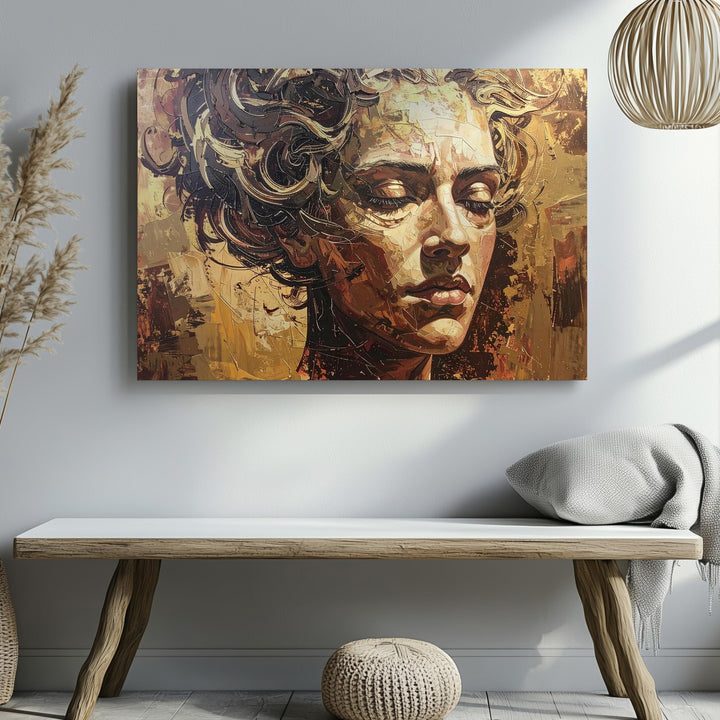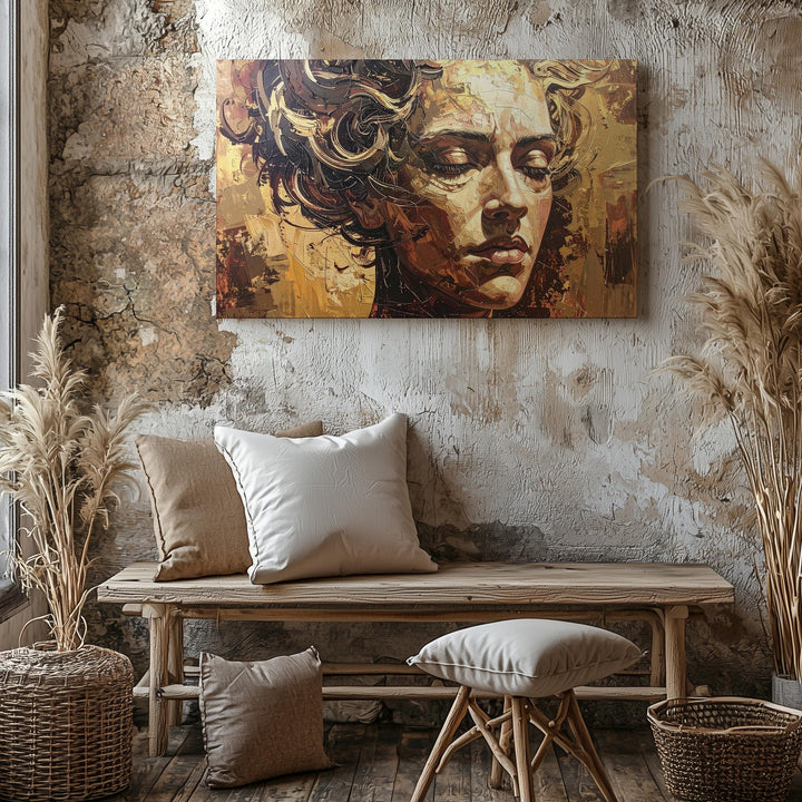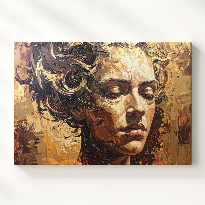 Golden Dream: Abstract Face Canvas – Textured Portrait Wall Art