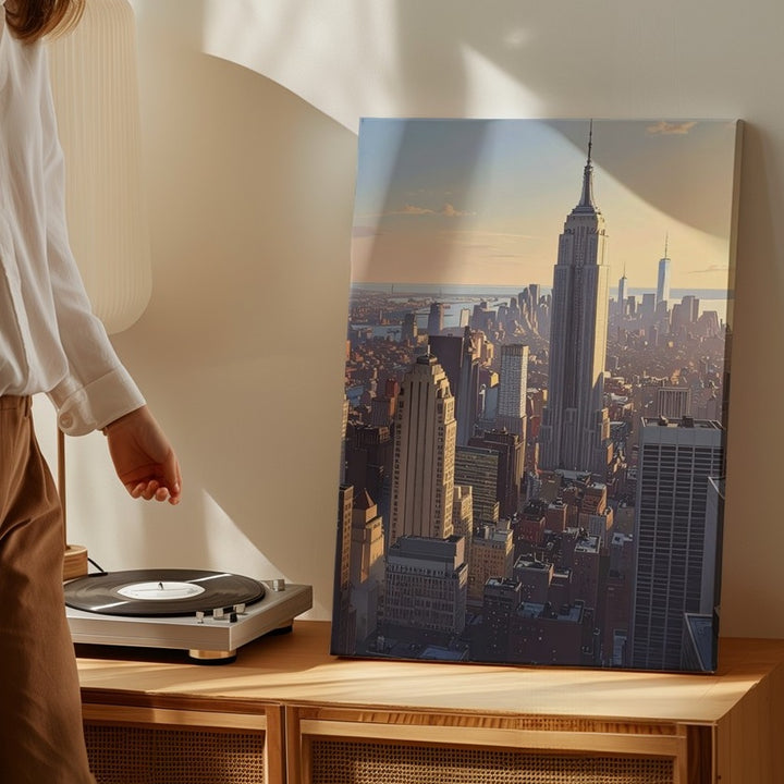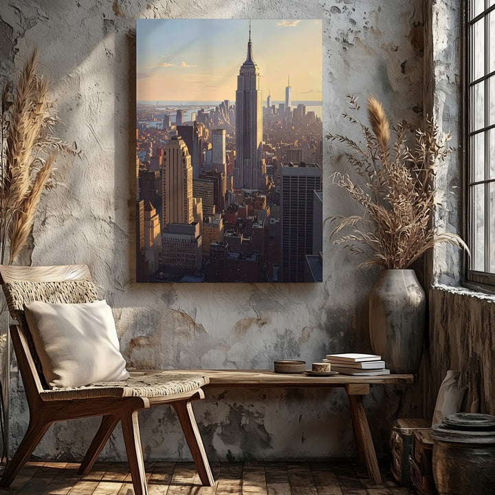 Golden Hour NYC Skyline Canvas – Detailed Empire State Building at Sunset