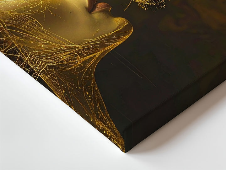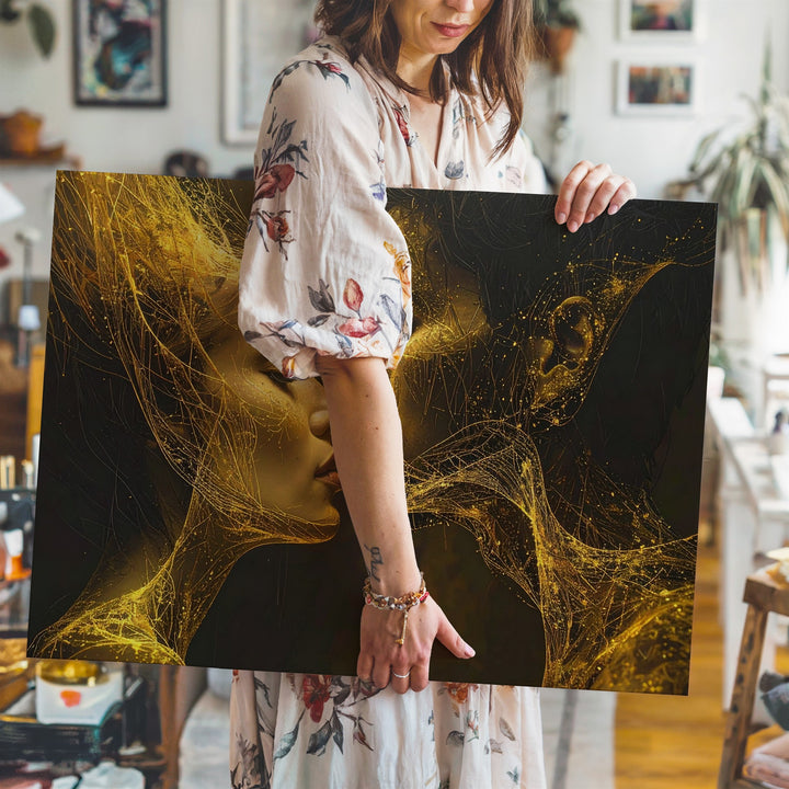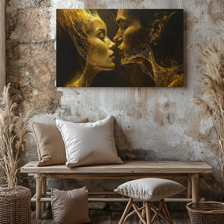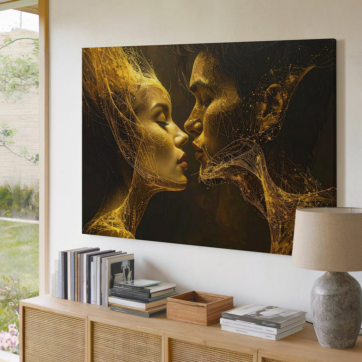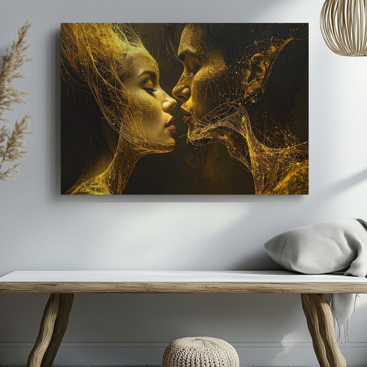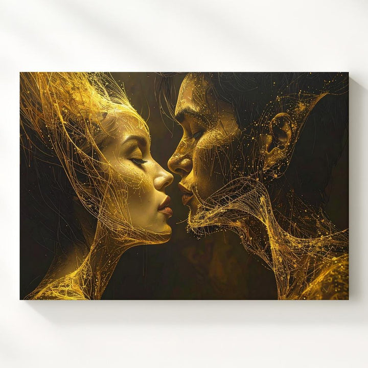 Golden Kiss Canvas – Abstract Love Energy with Glowing Faces