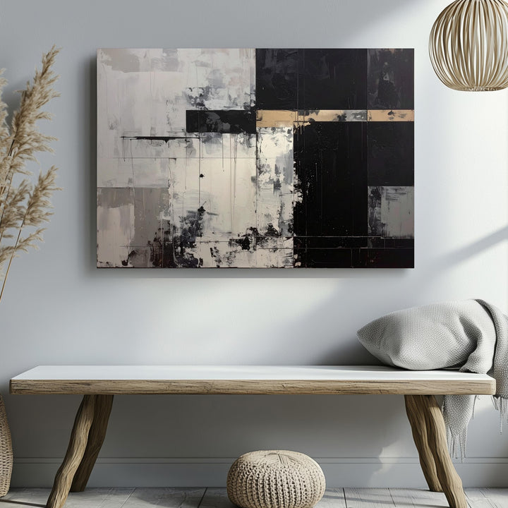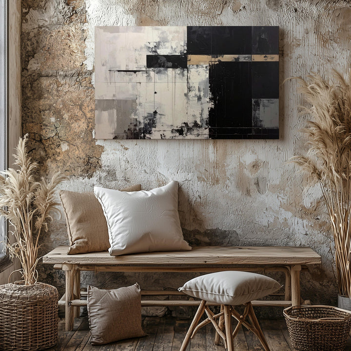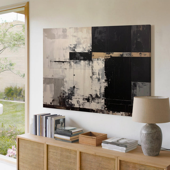 Industrial Contrast Canvas – Minimalist Abstract Art with Black and Beige Elements