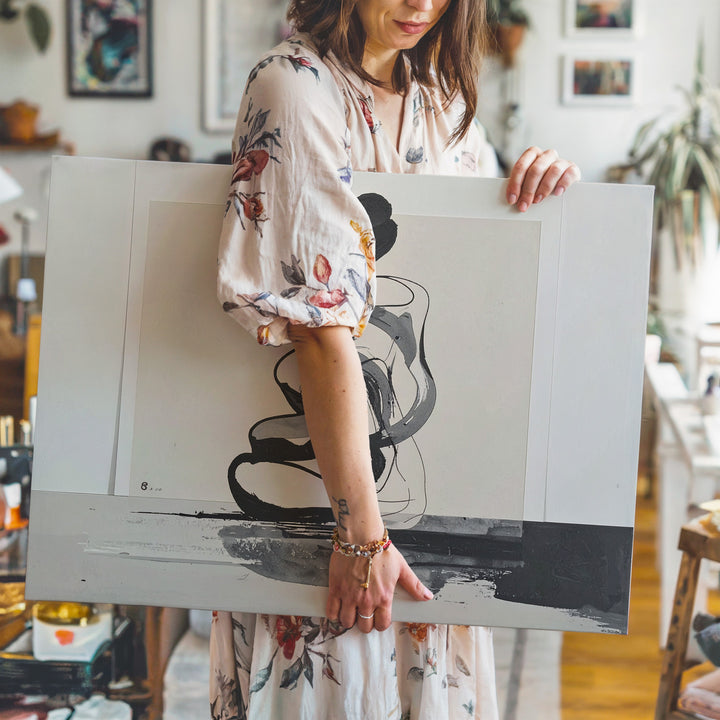 Ideal for modern living rooms, offices, or minimalist galleries seeking evocative abstract expressionism.