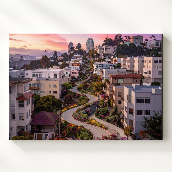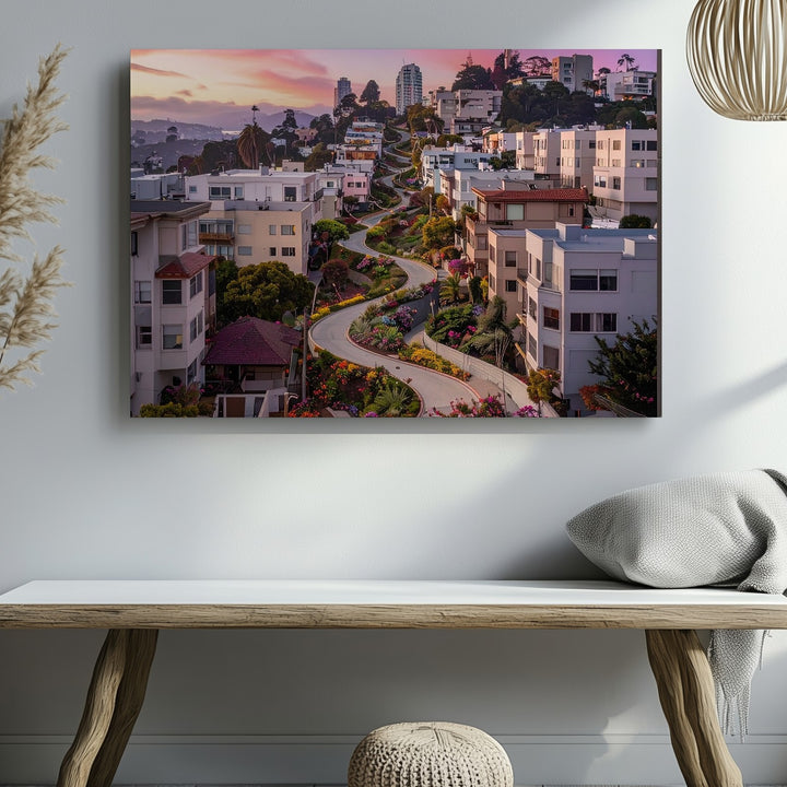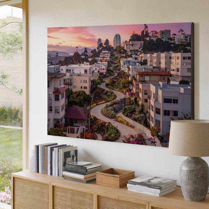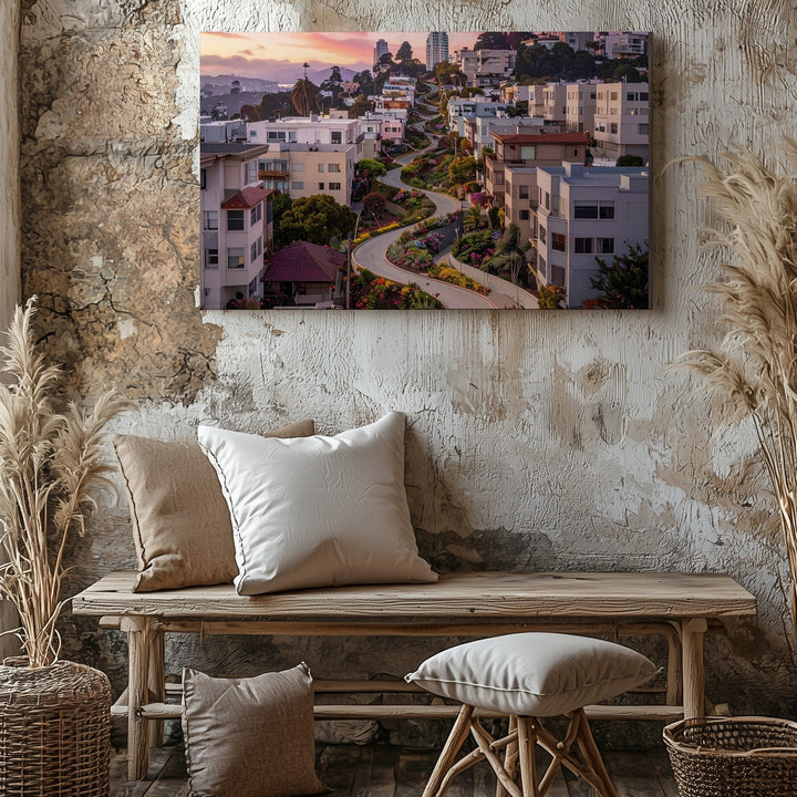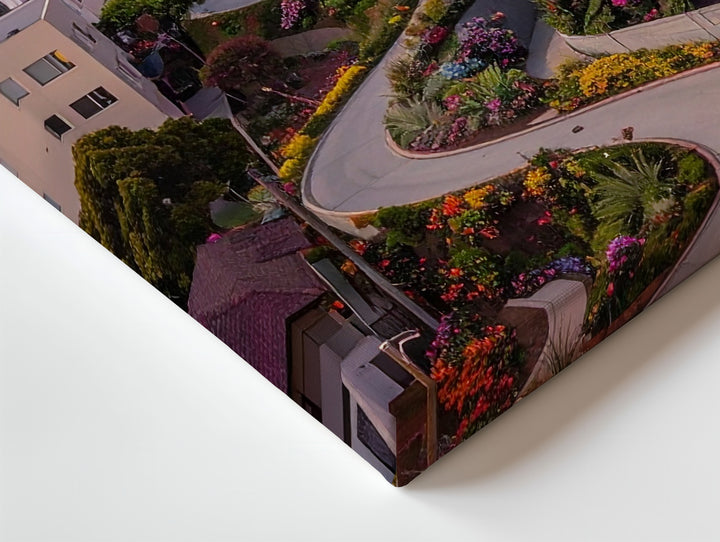 Lombard Street Aerial Canvas – Curved San Francisco Sunset Wall Art