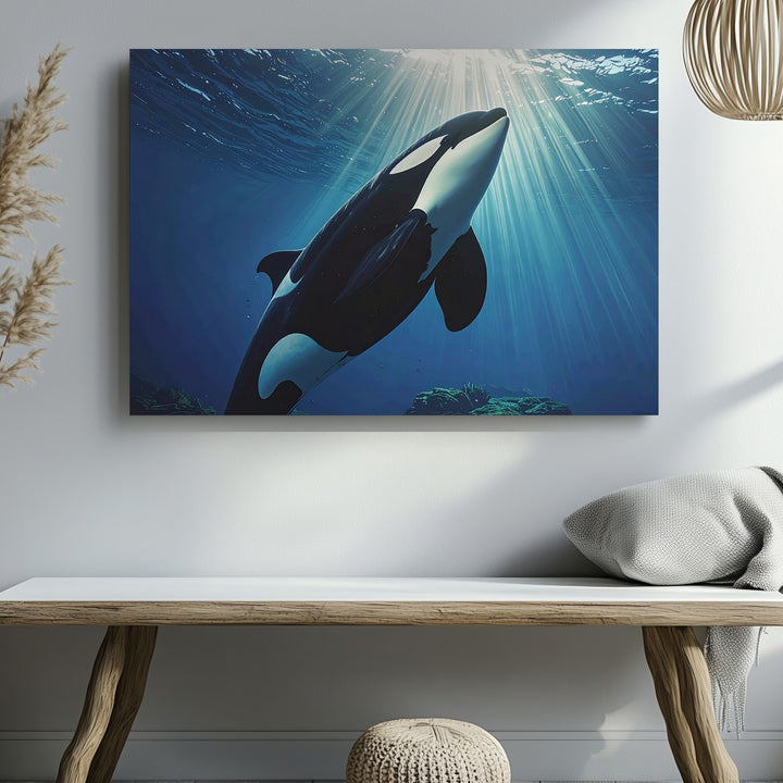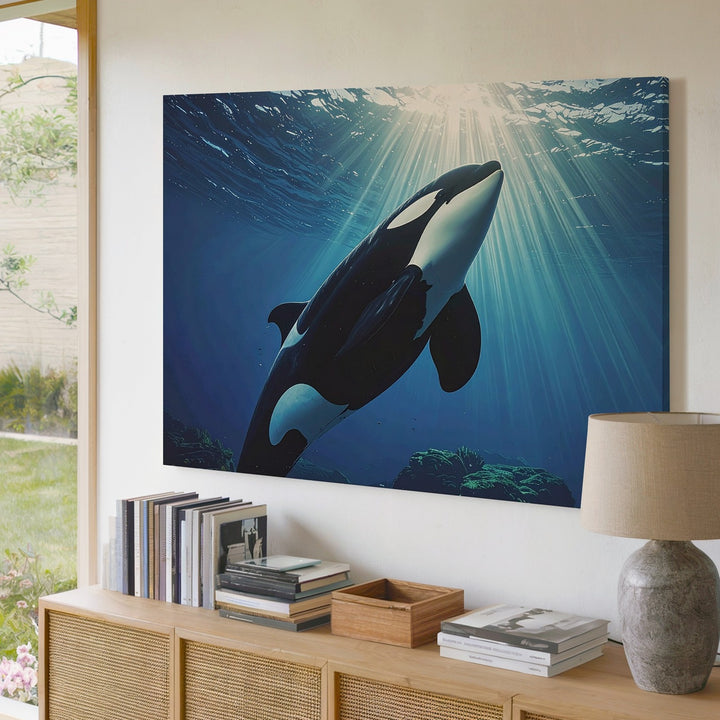Majestic Orca Ascending Canvas – Cinematic Underwater Marine Art