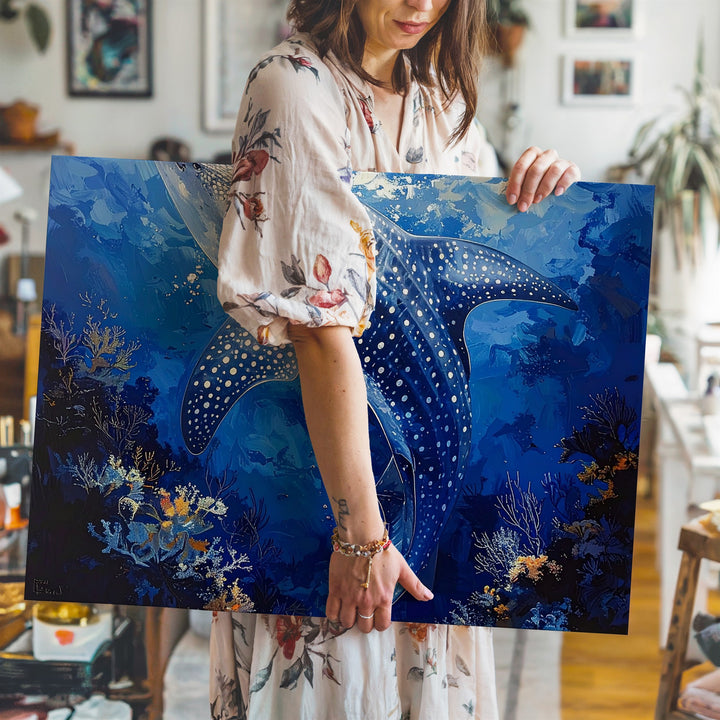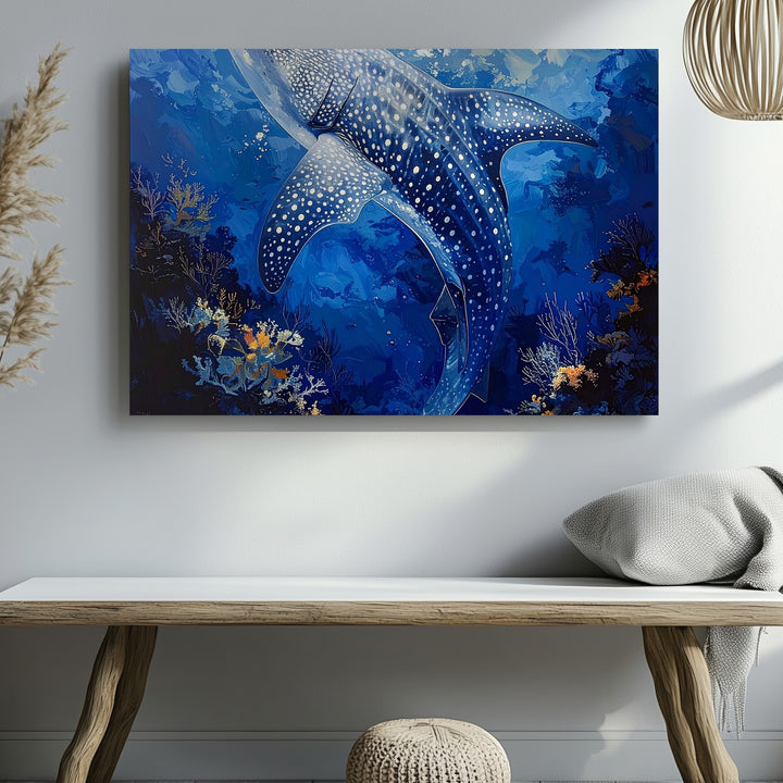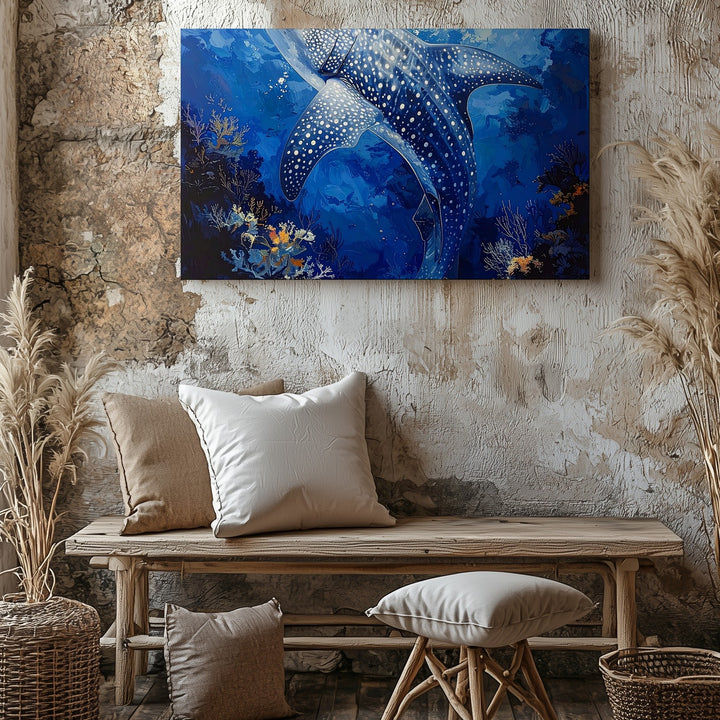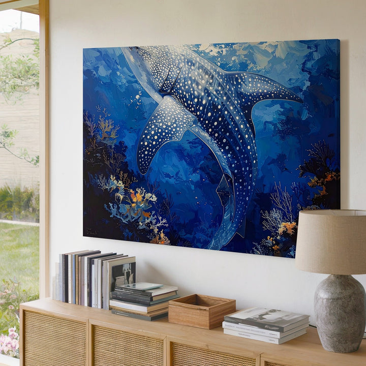 Majestic Whale Shark Canvas – Serene Deep Ocean Art