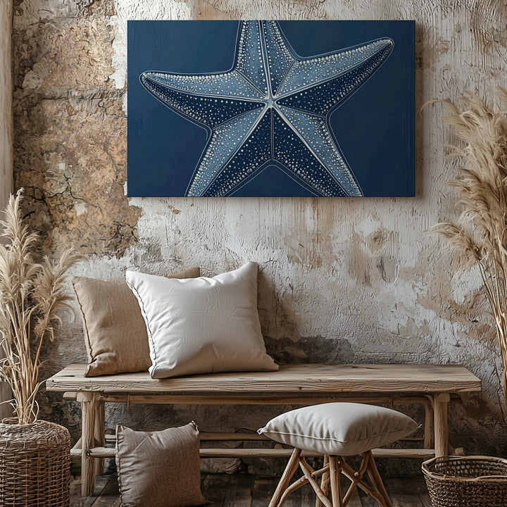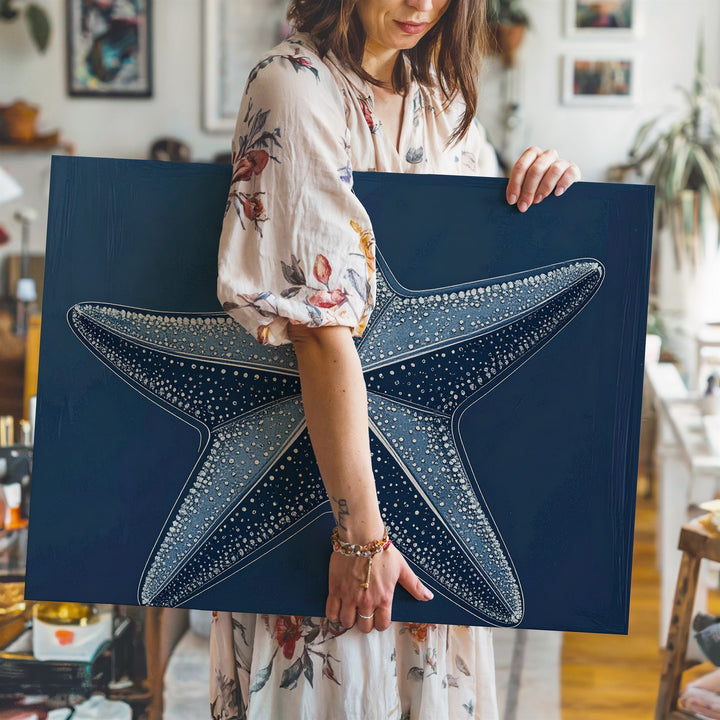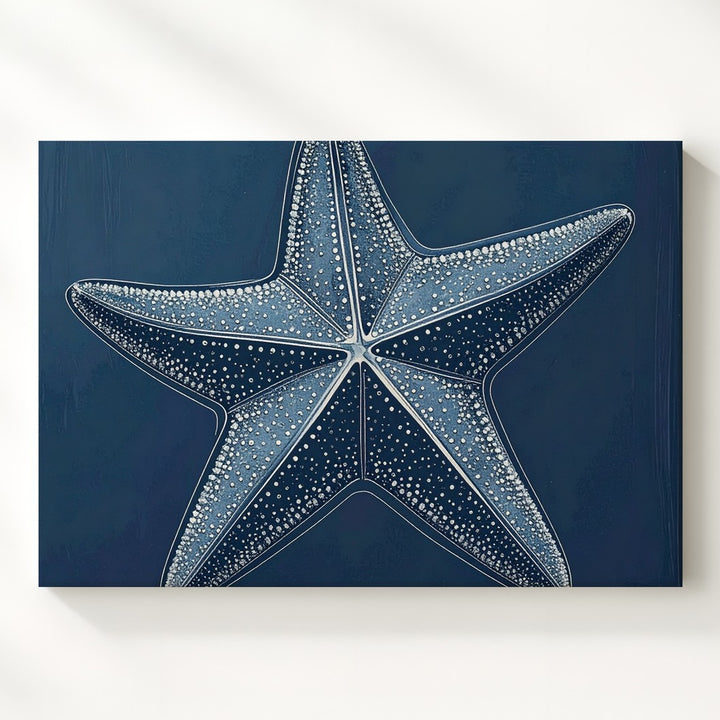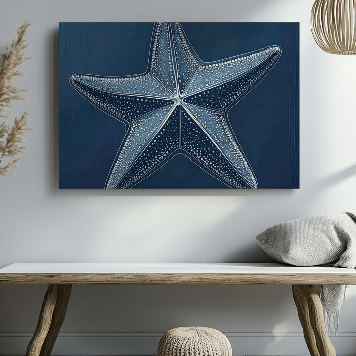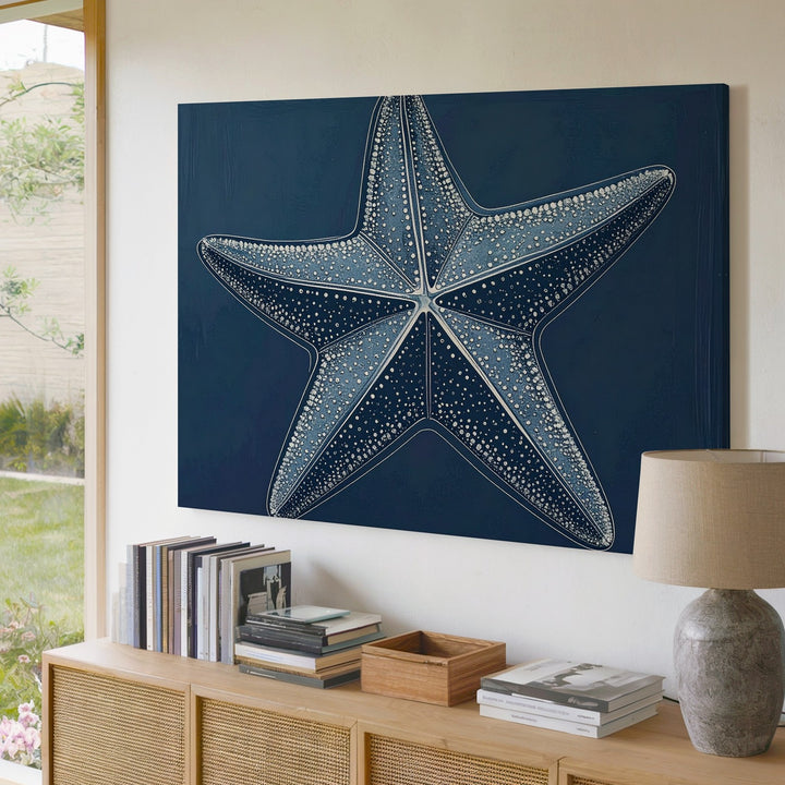 Minimalist Starfish Canvas – White Line Art on Deep Navy
