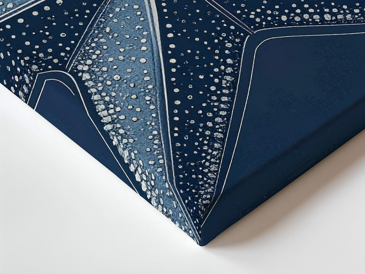 This elegant digital canvas features a centered white starfish rendered in clean, dotted detail against a smooth navy background. With perfectly curved arms and precision linework, the design captures marine beauty through balance and simplicity. The contrast between the bright, textured starfish and the rich dark backdrop creates a striking visual—minimal, modern, and full of quiet coastal inspiration.