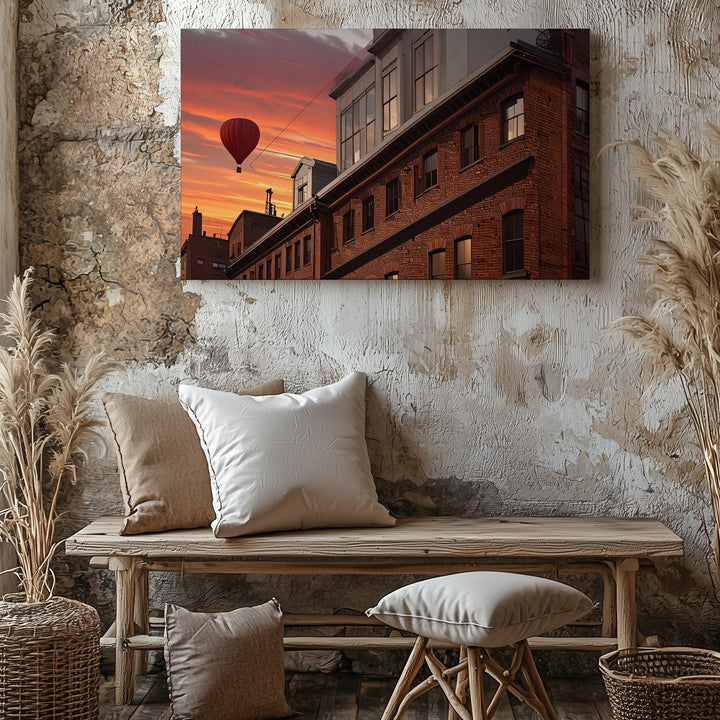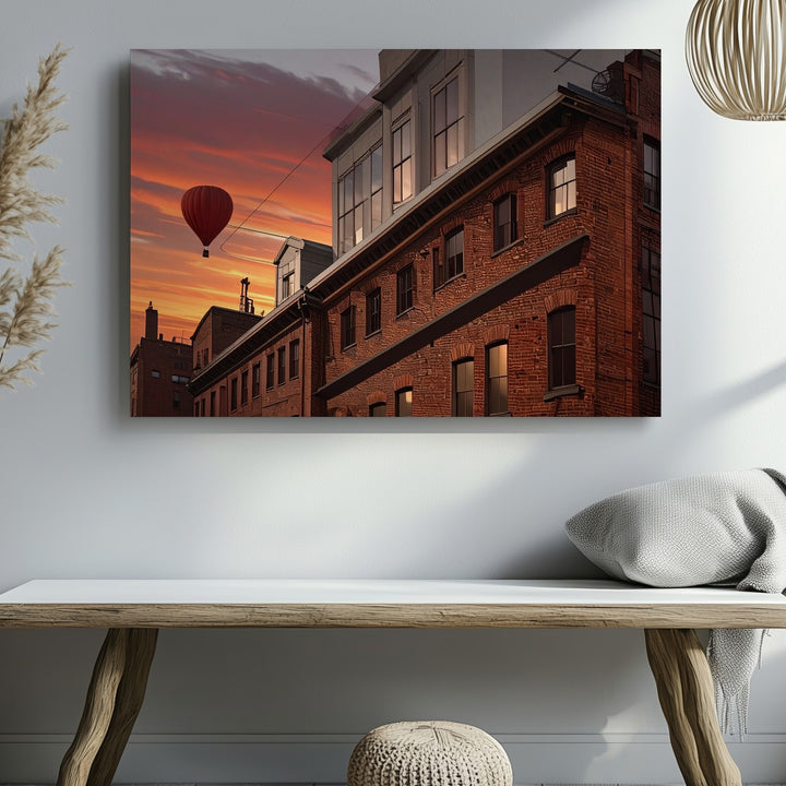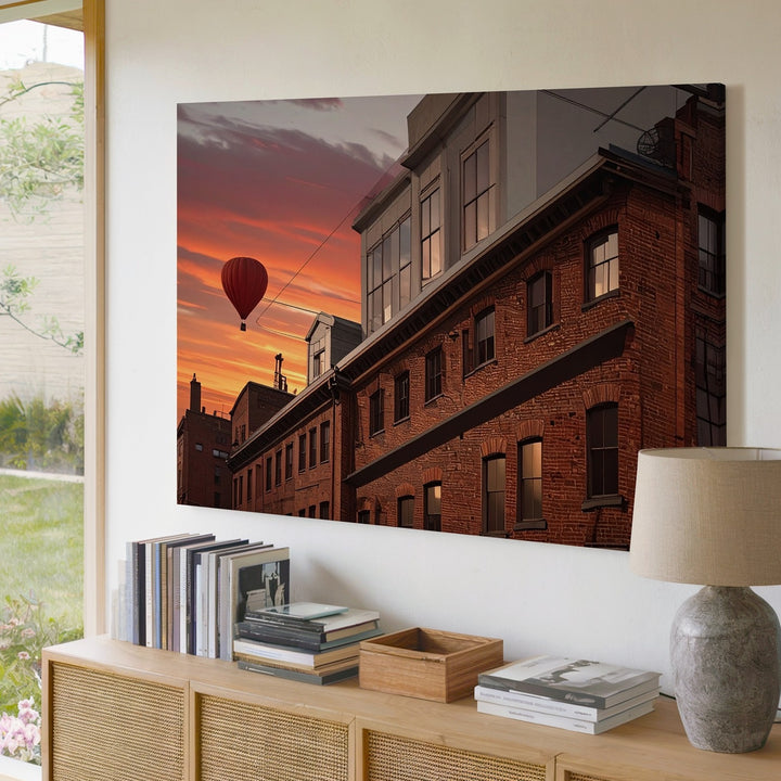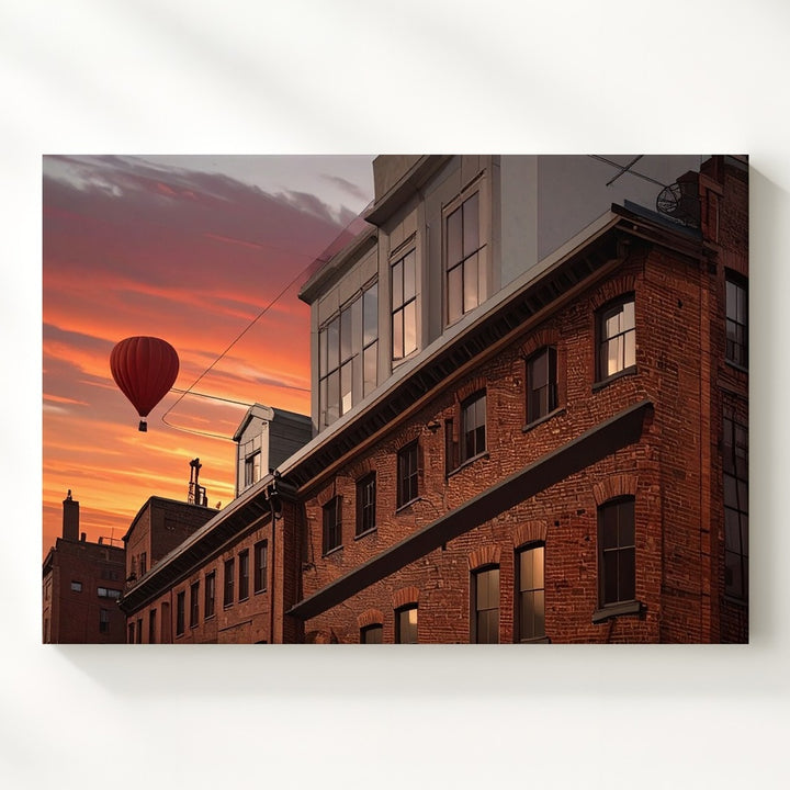 Urban Sunset & Balloon Canvas – Minimalist Cityscape Wall Art