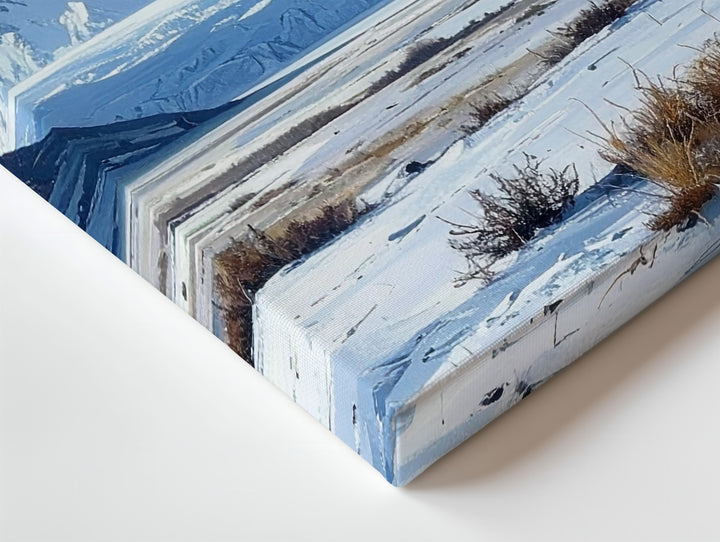 Silent Blue Horizon Canvas – Minimalist Winter Mountain Landscape