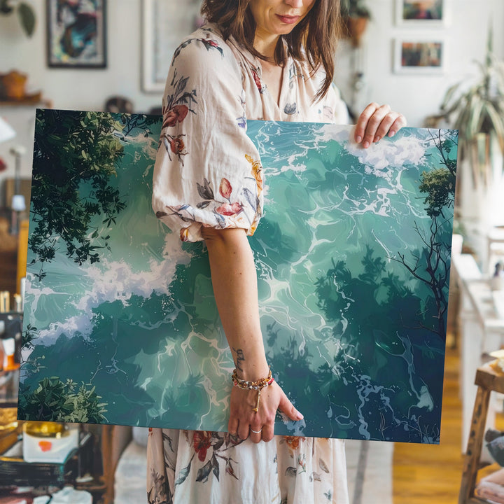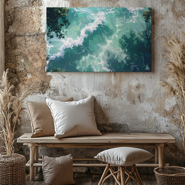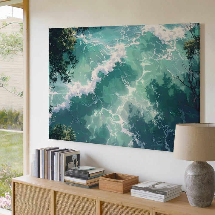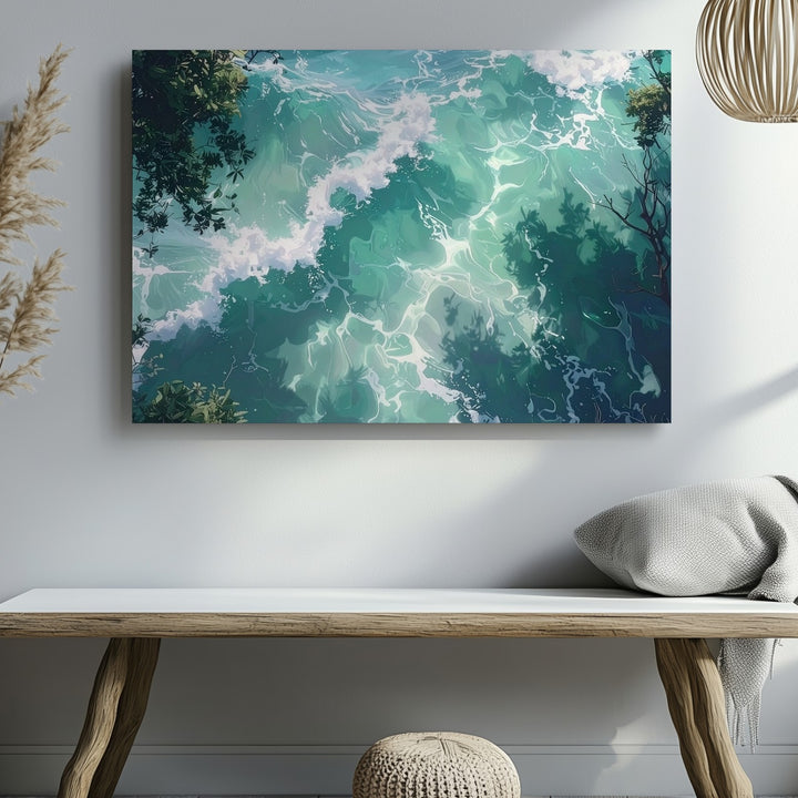 Minty Green Ocean Canvas – Serene Top-Down Water Art