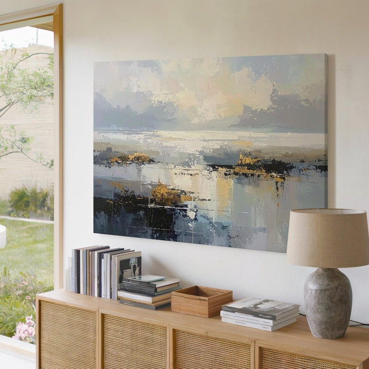 Misty Horizon Canvas – Serene Abstract Landscape in Soft Blues and Grays