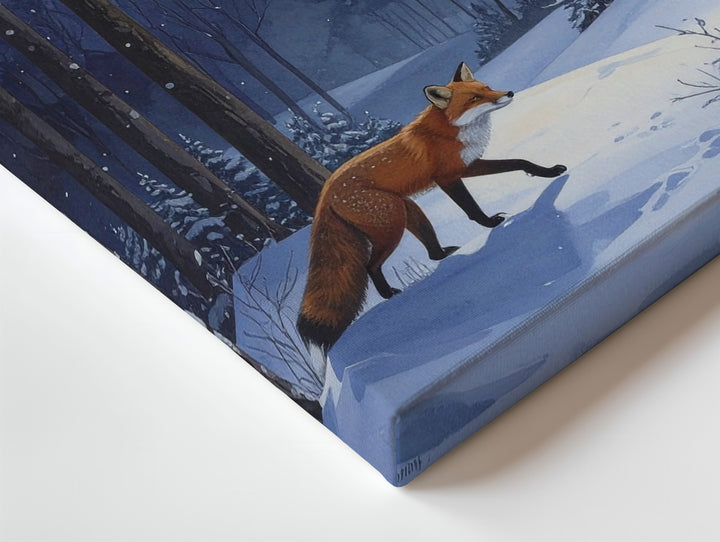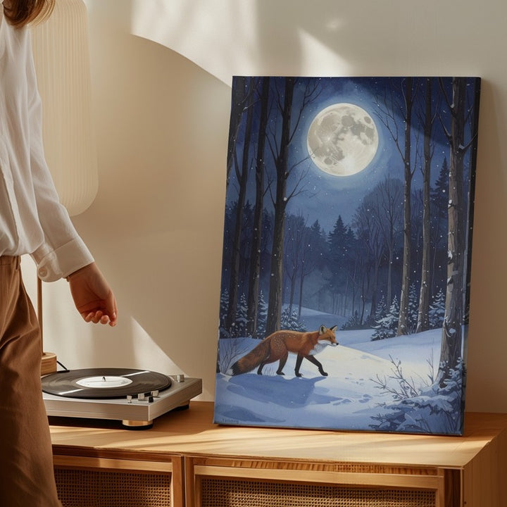 Moonlit Red Fox Winter Canvas – Enchanted Forest Night Scene