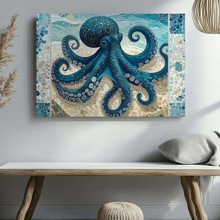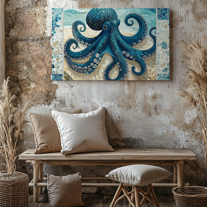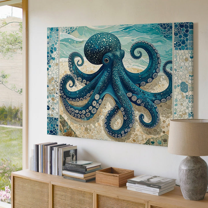 Mosaic Octopus Canvas – Mediterranean-Inspired Marine Digital Illustration