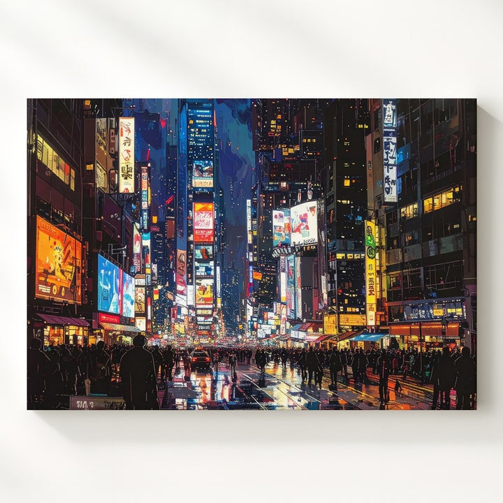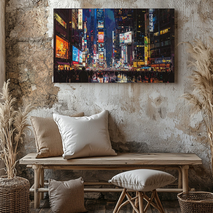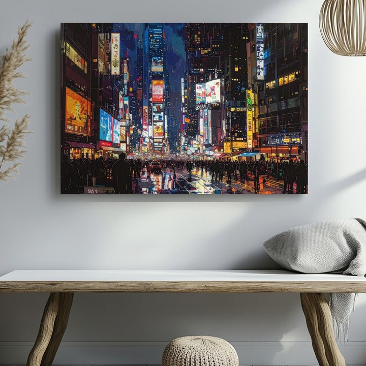 Neon City Lights Canvas – Futuristic Night Street Scene Wall Art