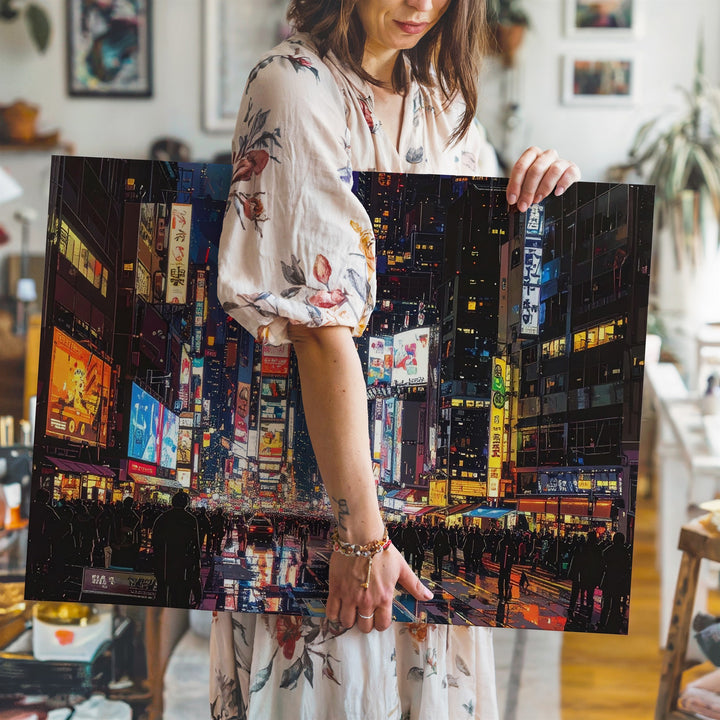 • Urban Sensory Overload: Graphic detail captures the chaos and thrill of nighttime city life.