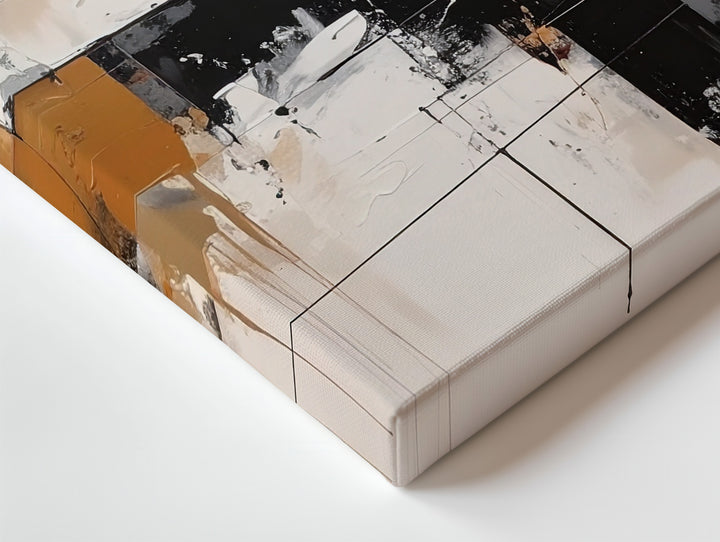 Ochre & Black Mixed Media Canvas – Contemporary Abstract Minimalist Art