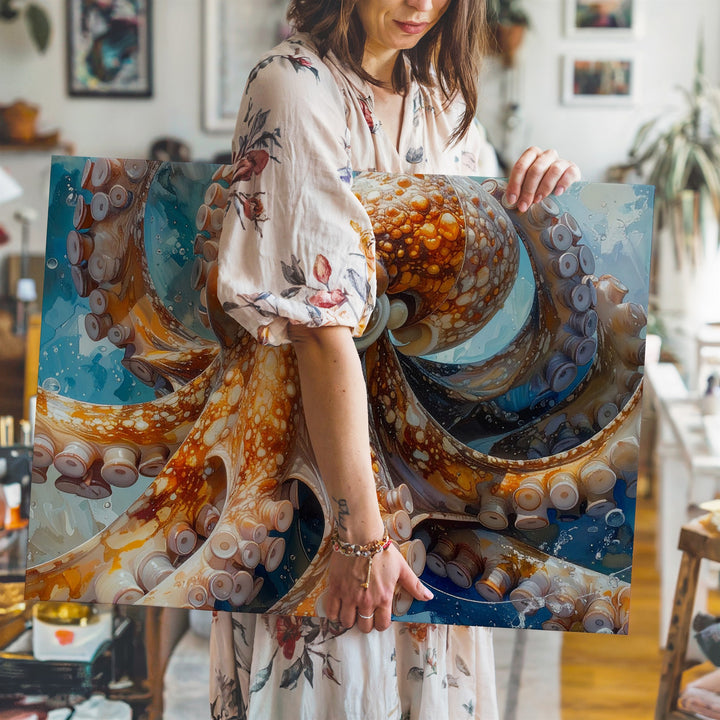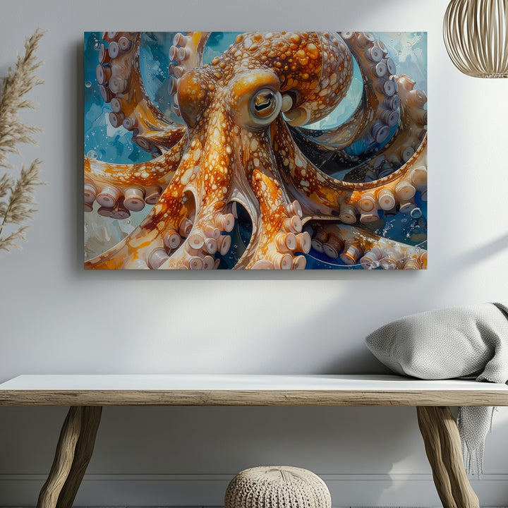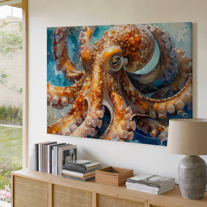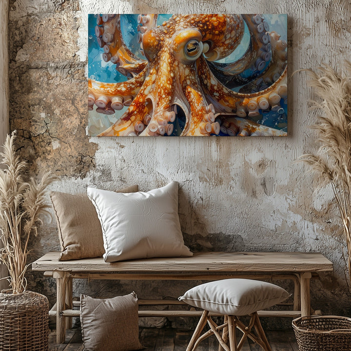 Vibrant Orange Octopus Canvas – Hyper-Detailed Digital Ocean Art
