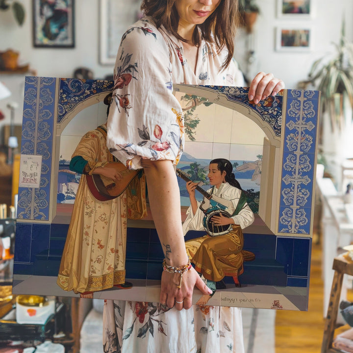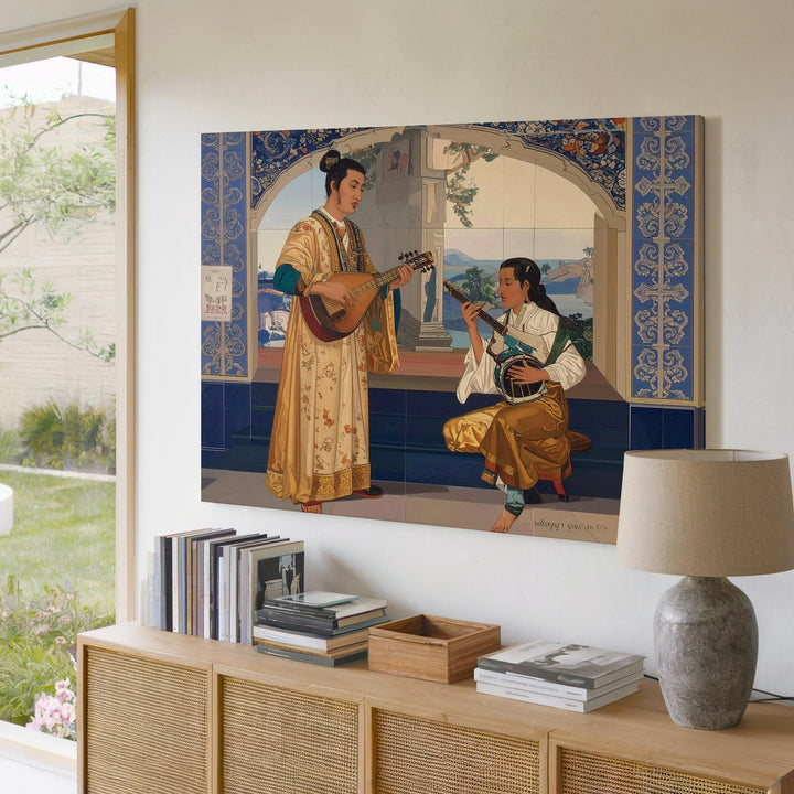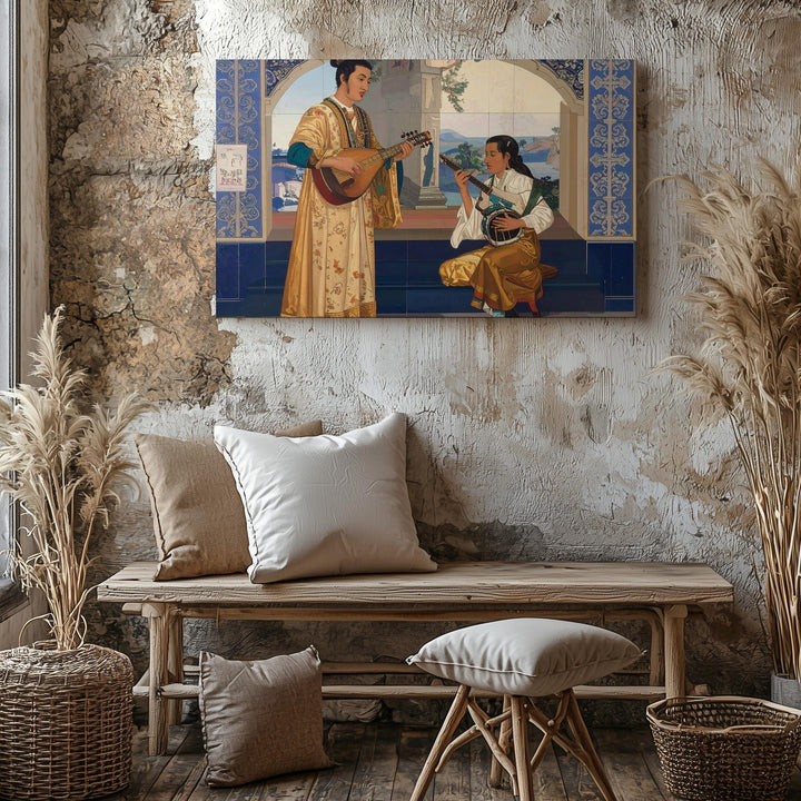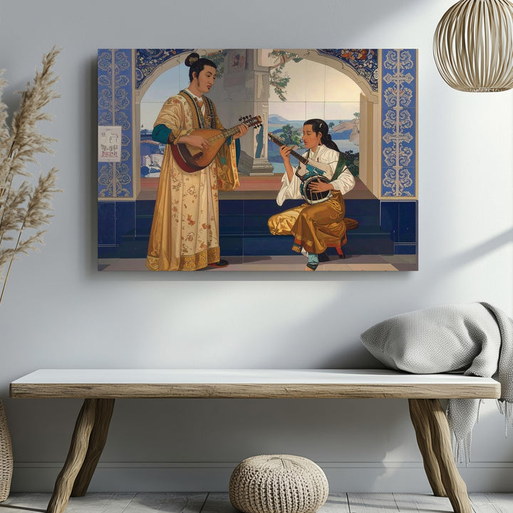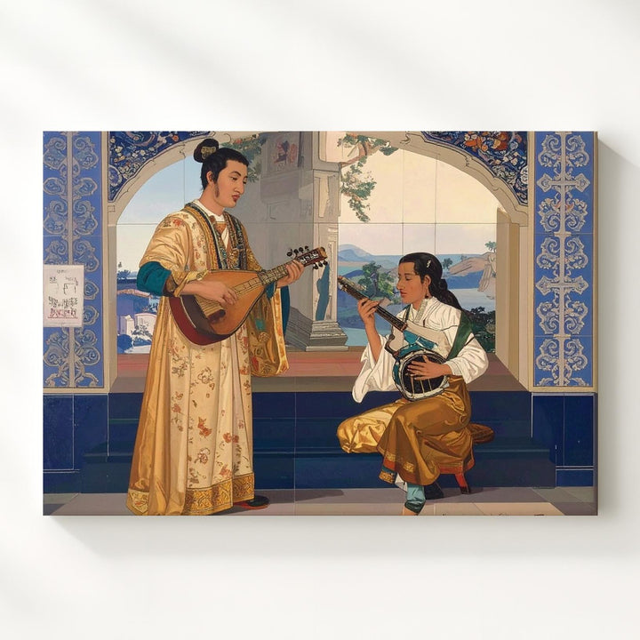 Orientalist Music Duo Canvas – Classical Cultural Art with Traditional Instruments