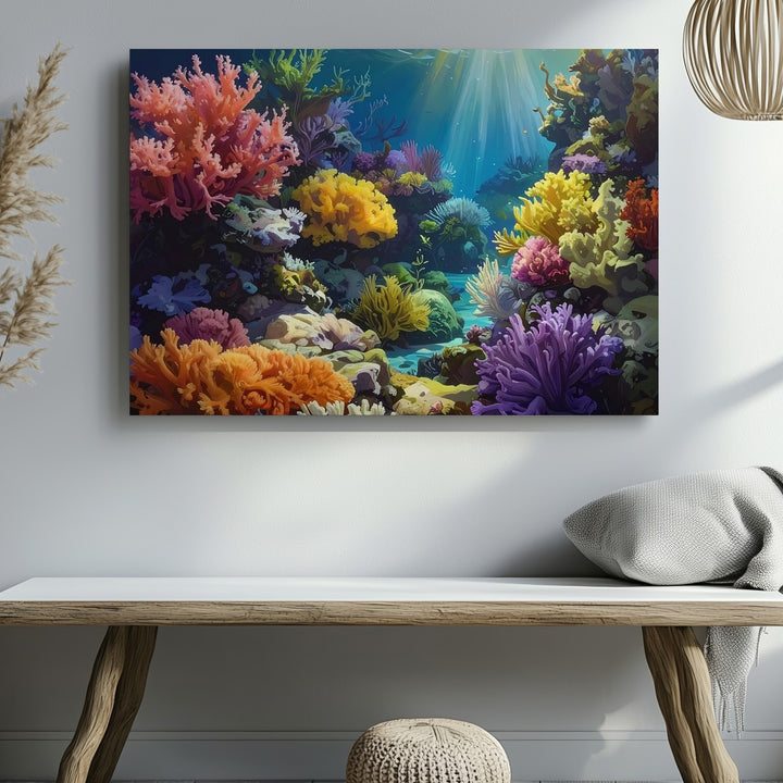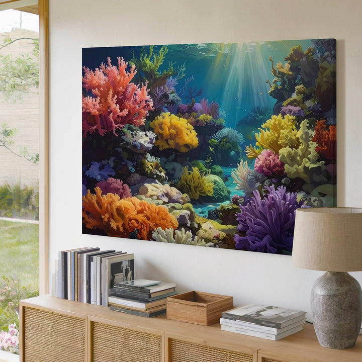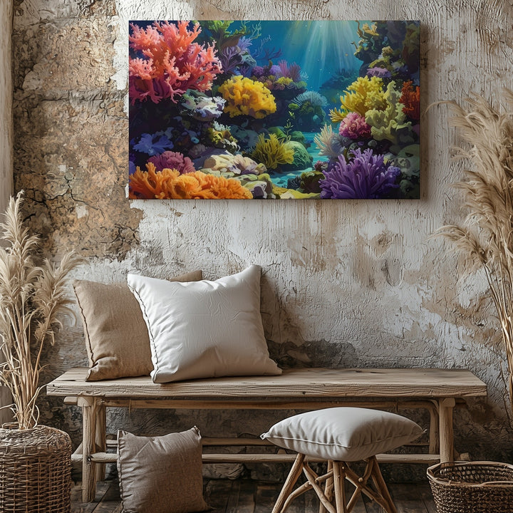 Painterly Coral Garden Canvas – Vibrant Underwater Reef Art