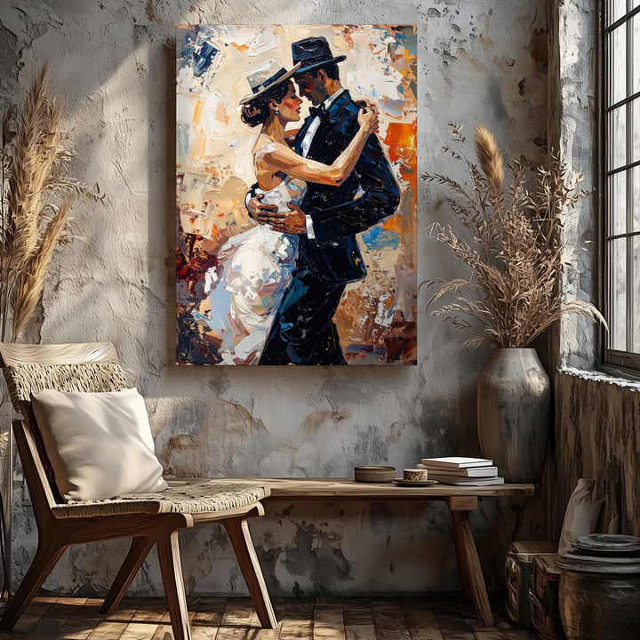 Passionate Dance Canvas – Romantic Couple in Tango Embrace