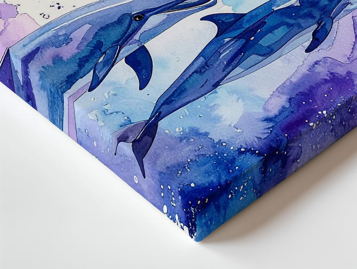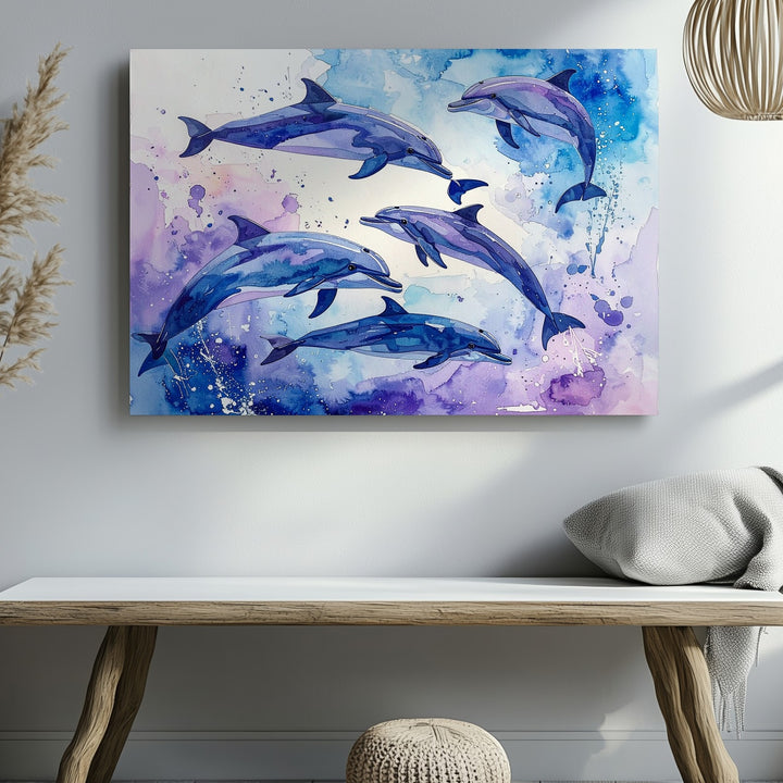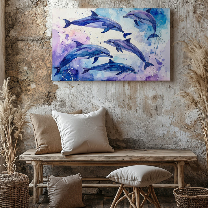 Pastel Dolphin Dance Canvas – Delicate Watercolor Marine Illustration