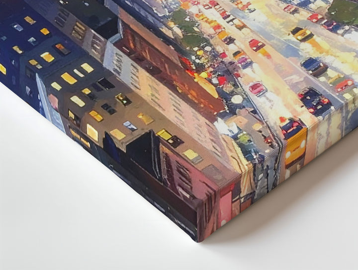 Midnight Avenue Canvas – Abstract Rainy Cityscape from Above