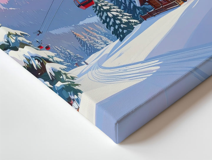 Red Gondola Winter Mountain Canvas – Cozy Alpine Scenic Illustration