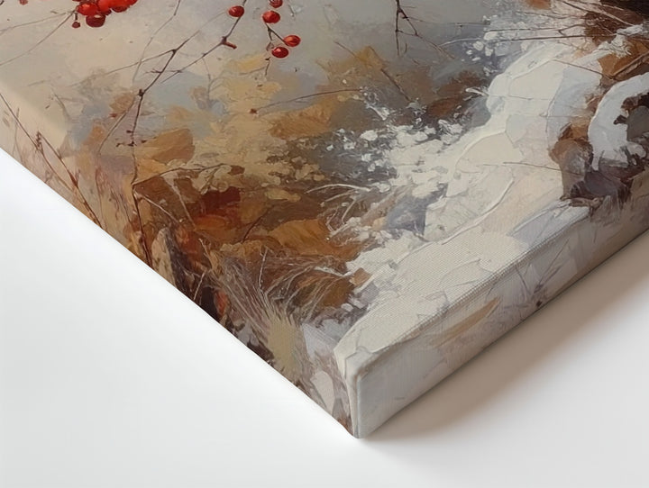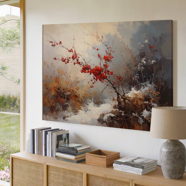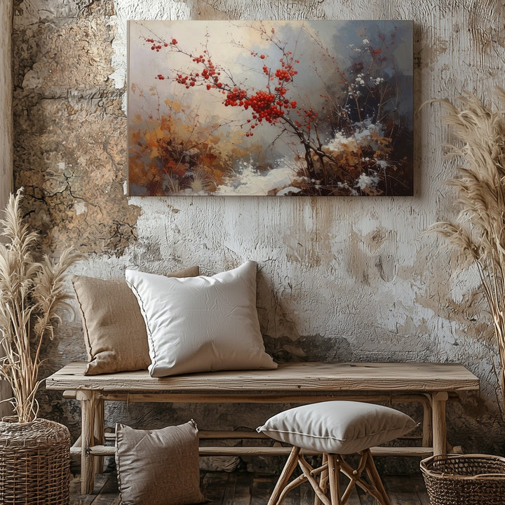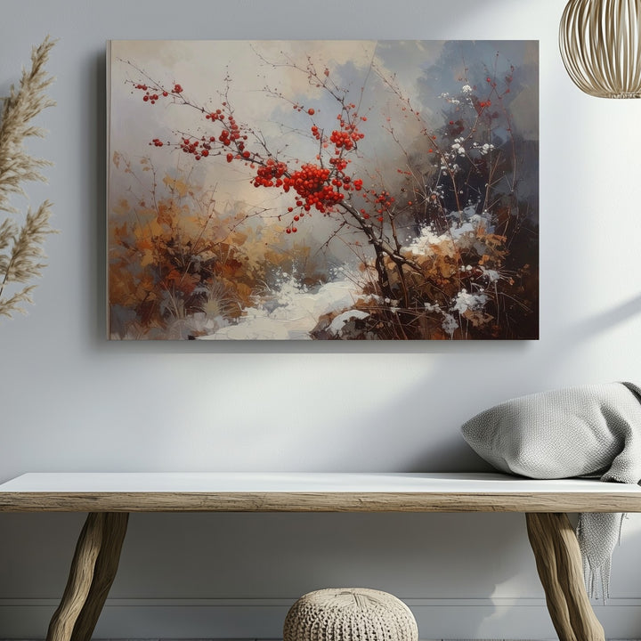 Red Winter Berries Canvas – Minimalist Watercolor Nature Art