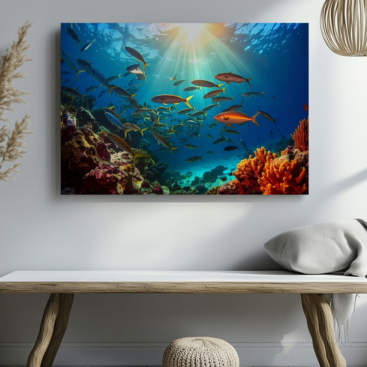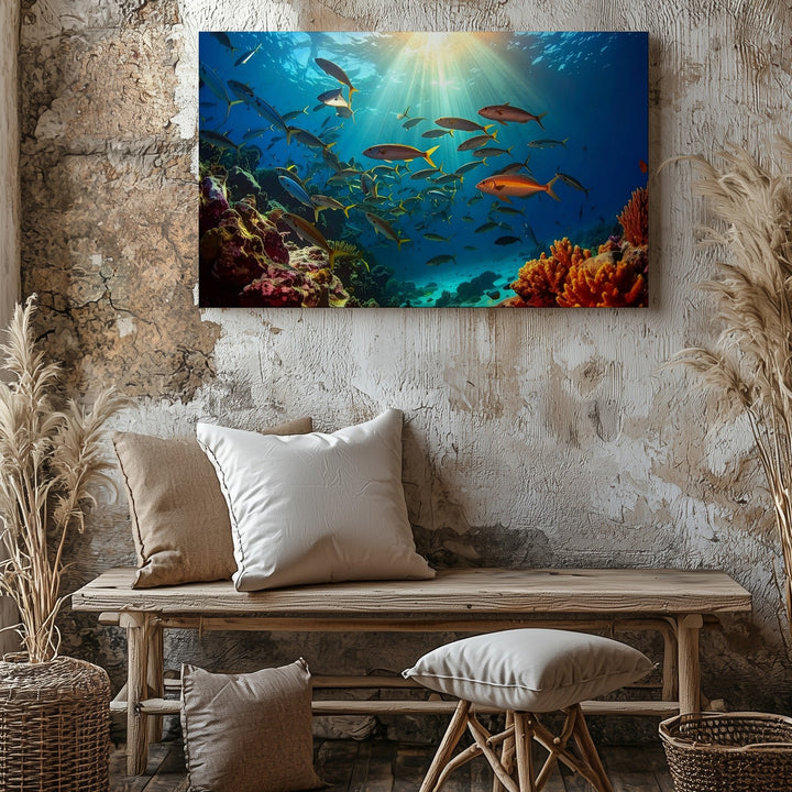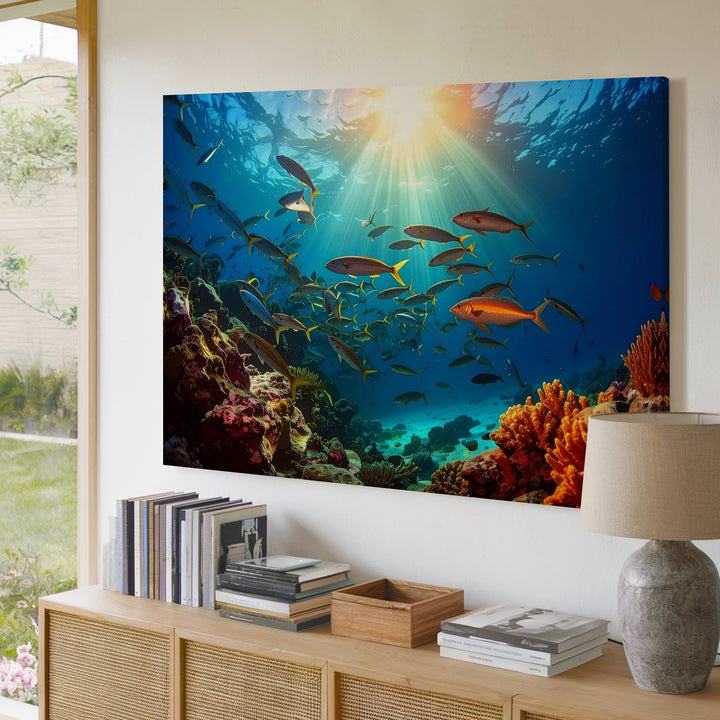 Harmony in Motion Canvas – School of Fish Over Coral Reef