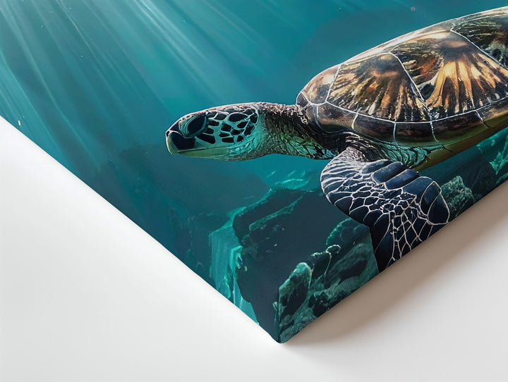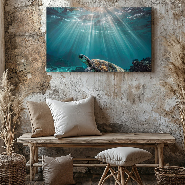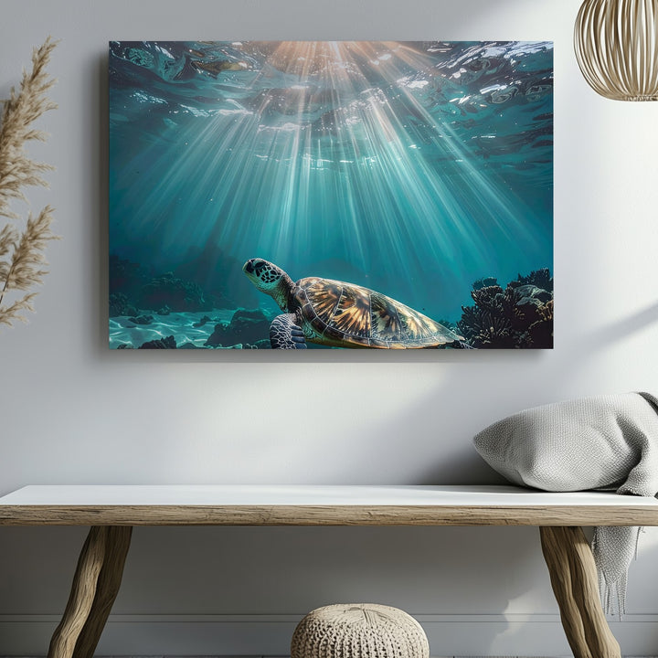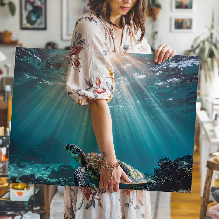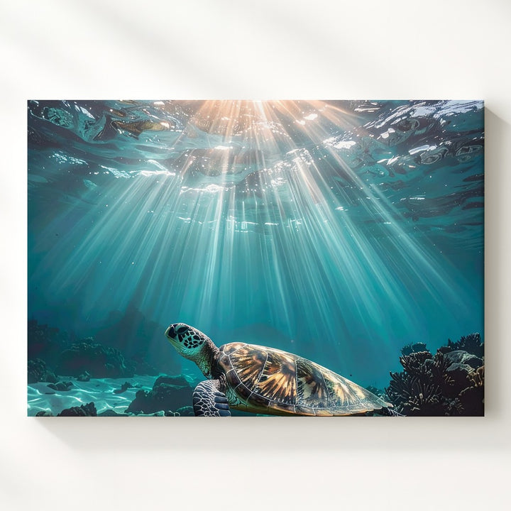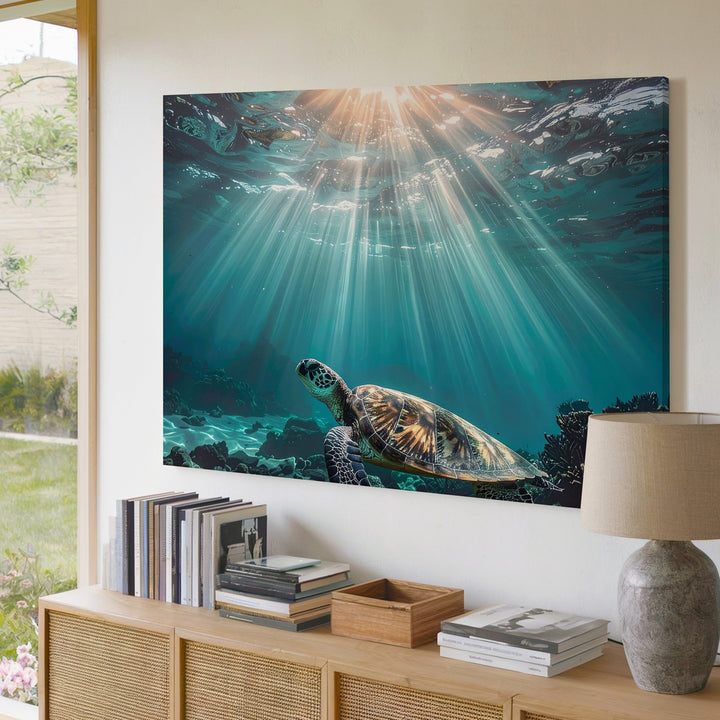 Serene Sea Turtle Canvas – Peaceful Sunlit Underwater Scene